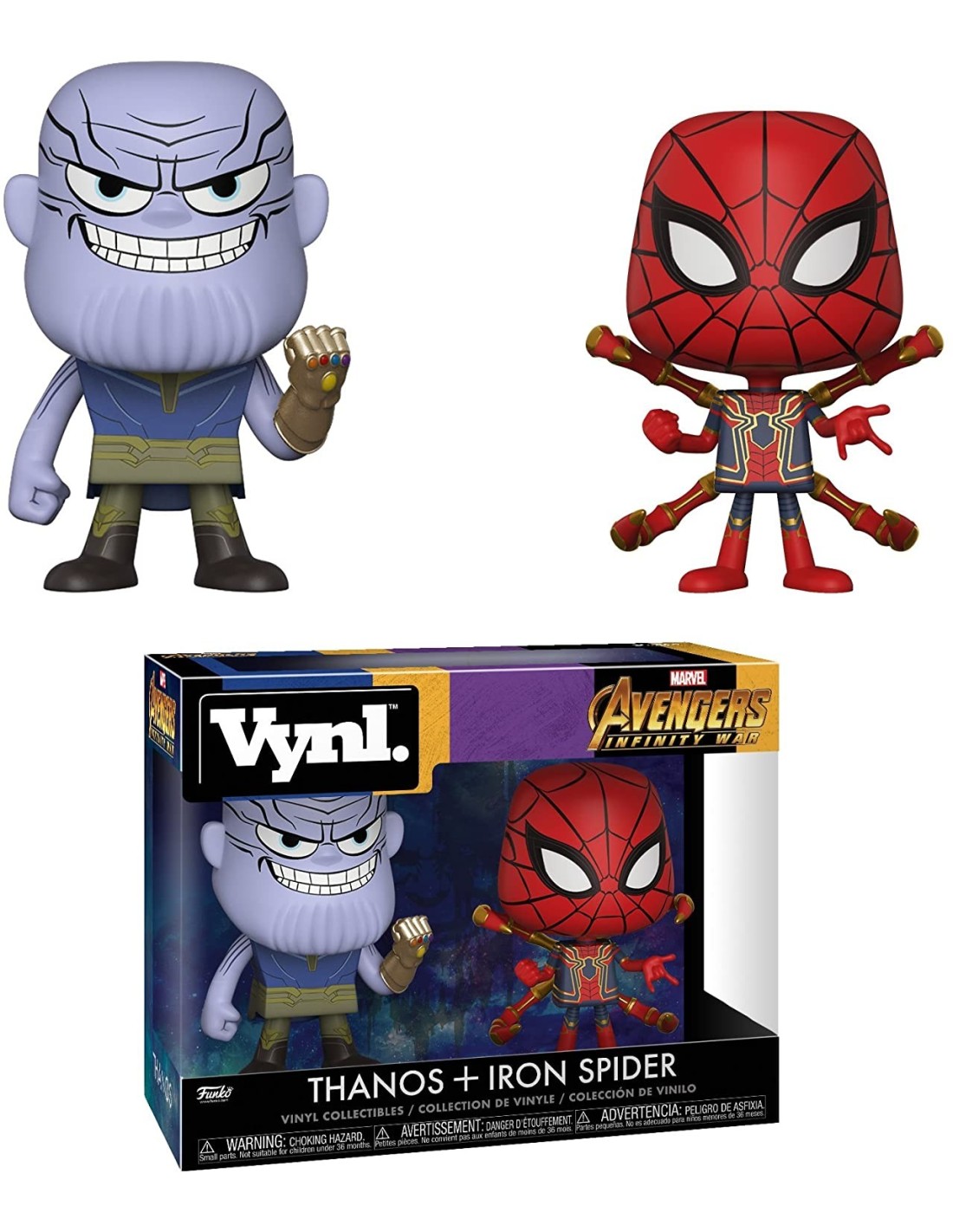 Figura de Vinilo de la colección Funko Pop! Vynl Marvel Los Vengadores Thanos y Iron Spider Pack-2. Colecciona todos los modelos de tus películas, series y cantantes favoritos, los puedes encontrar en Librephonia.