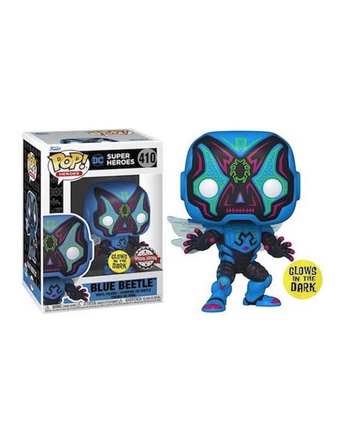 Figura de Vinilo de la colección Funko Pop! Día de los Muertos Blue Beetle. Colecciona todos los modelos de tus películas, series y cantantes favoritos, los puedes encontrar en Librephonia