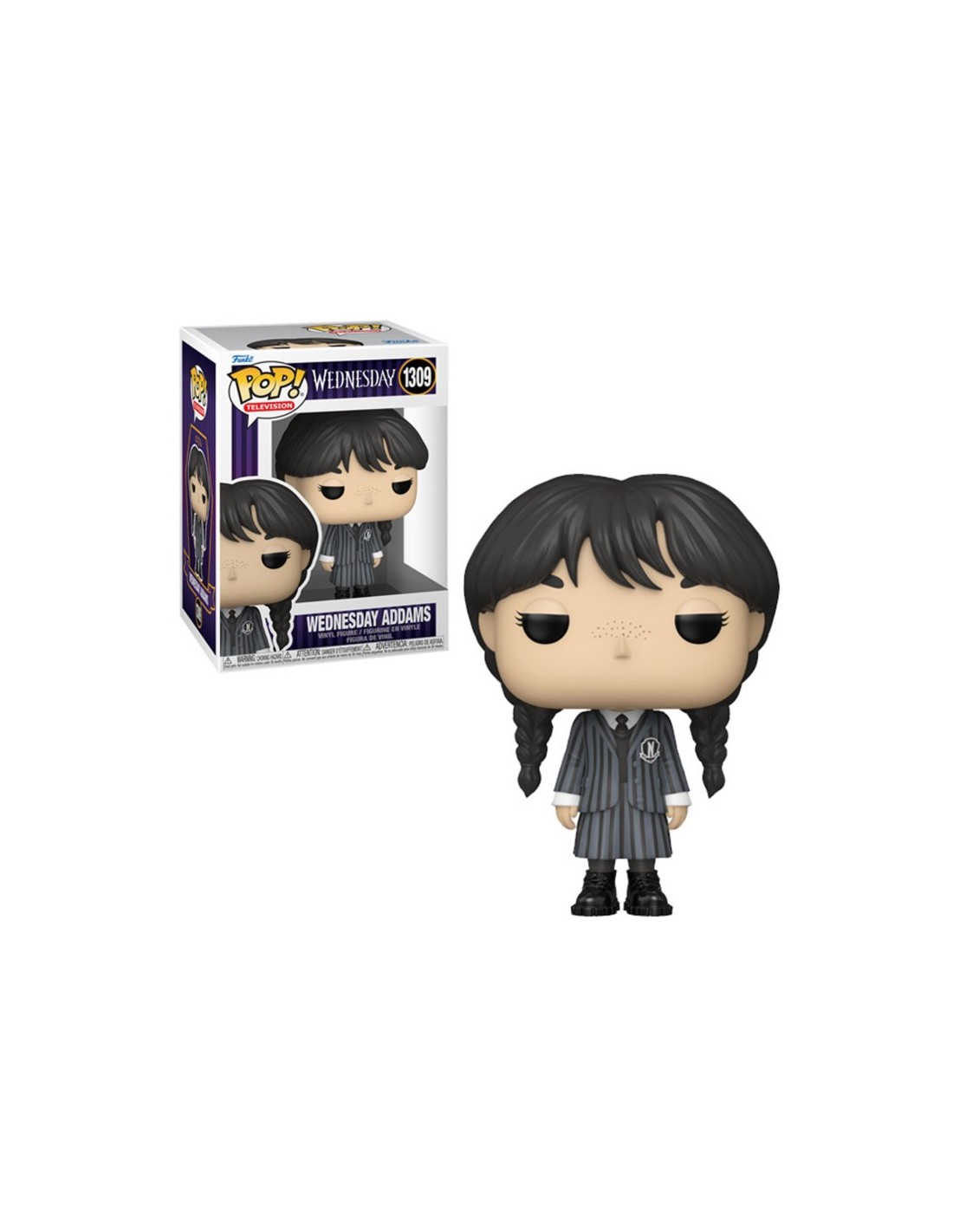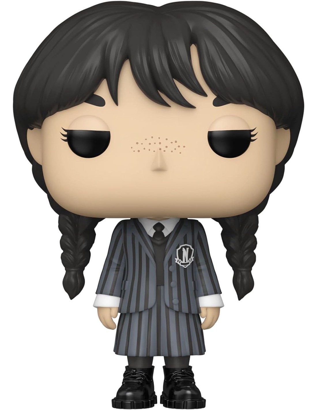 La Figura Funko Pop! Series Miércoles Modelo 1309 (67457) presenta a Miércoles en una pose distintiva, luciendo su clásico atuendo escolar y su expresión seria y enigmática. Cada detalle de esta figura ha sido meticulosamente esculpido y pintado, desde las trenzas en su cabello hasta su icónico traje, asegurando que la esencia del personaje sea fielmente representada en esta figura Funko Pop!