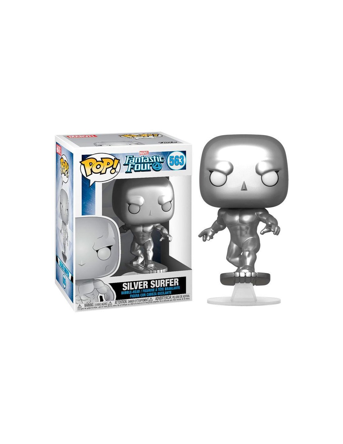 Descubre la impresionante Figura Funko Pop! Marvel Los Cuatro Fantásticos Silver Surfer Modelo 563 | 44992, una adición esencial para cualquier amante del universo Marvel y los coleccionistas de Funko Pop. Esta figura detallada captura al icónico Silver Surfer, el enigmático heraldo de Galactus, en todo su esplendor plateado.