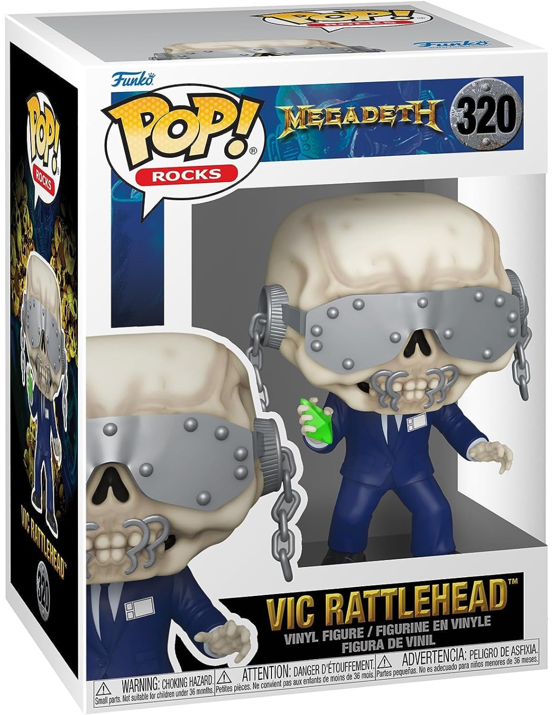 Prepárate para sentir la intensidad del metal con la Figura Funko Pop! Rocks Megadeth Vic Rattlehead, modelo 320 | 65772. Esta representación coleccionable trae a tu estantería a Vic Rattlehead, la emblemática mascota y portada de los álbumes de la legendaria banda de heavy metal, Megadeth.