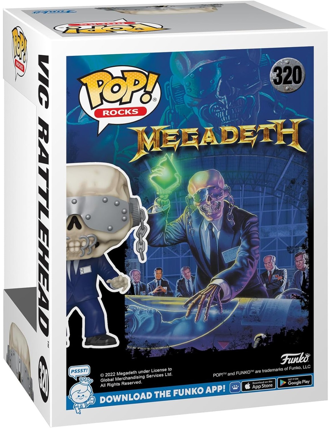 Esta figura Funko Pop! captura a la perfección la esencia oscura y rebelde de Vic Rattlehead, con detalles precisos y un diseño que refleja la crudeza del arte de Megadeth. Es el regalo ideal para los fans de la banda y para aquellos apasionados por el rock y el metal.