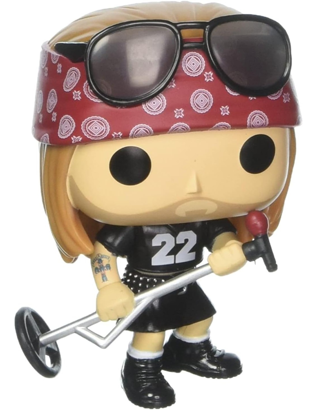 Guns N' Roses irrumpió en la escena musical en los años 80, y con éxitos como "Paradise City" y "November Rain", se estableció como una de las bandas de rock más influyentes de la historia. Axl Rose, con su característico pañuelo, tatuajes y micrófono en mano, es inmortalizado en esta figura Funko Pop!, representando el espíritu rebelde y apasionado del rock n' roll.