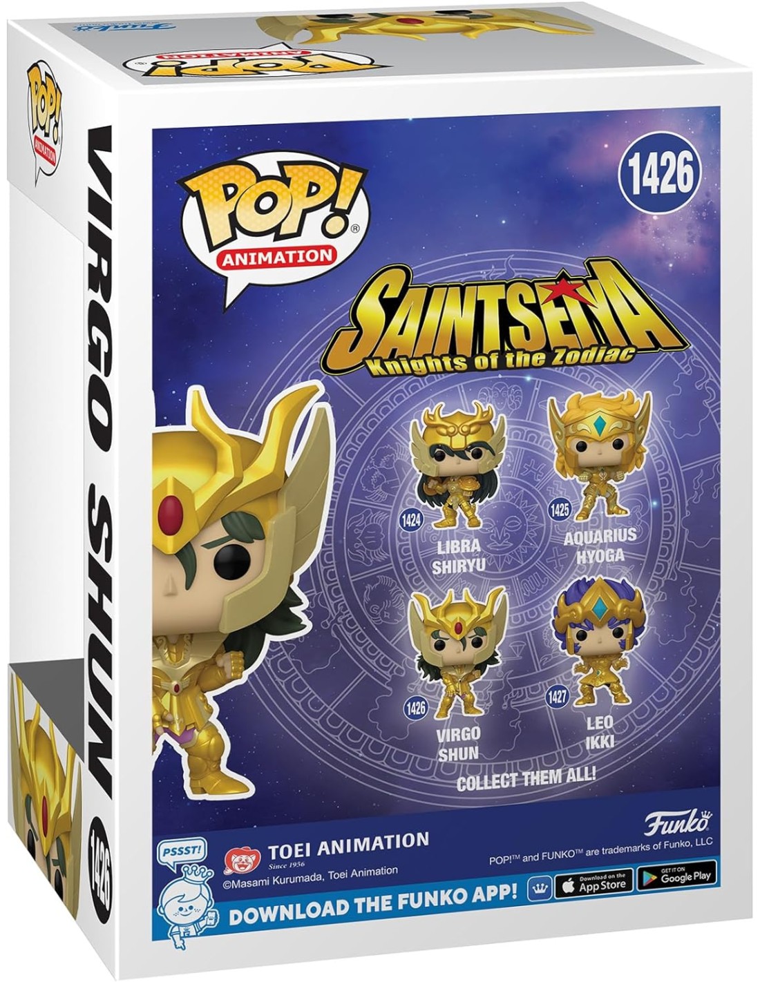 La Figura Funko Pop! Saint Seiya Caballeros del Zodiaco Virgo Shun captura la esencia de uno de los guerreros más admirados de la serie. Desde su postura icónica hasta los detalles intrincados de su armadura dorada, esta figura es una representación fiel del poder y la gracia de Shun. Únete a la lucha por la justicia cósmica y muestra tu devoción por los Caballeros del Zodiaco con esta pieza imprescindible. Un tesoro para los fanáticos que aprecian la nobleza en la batalla.