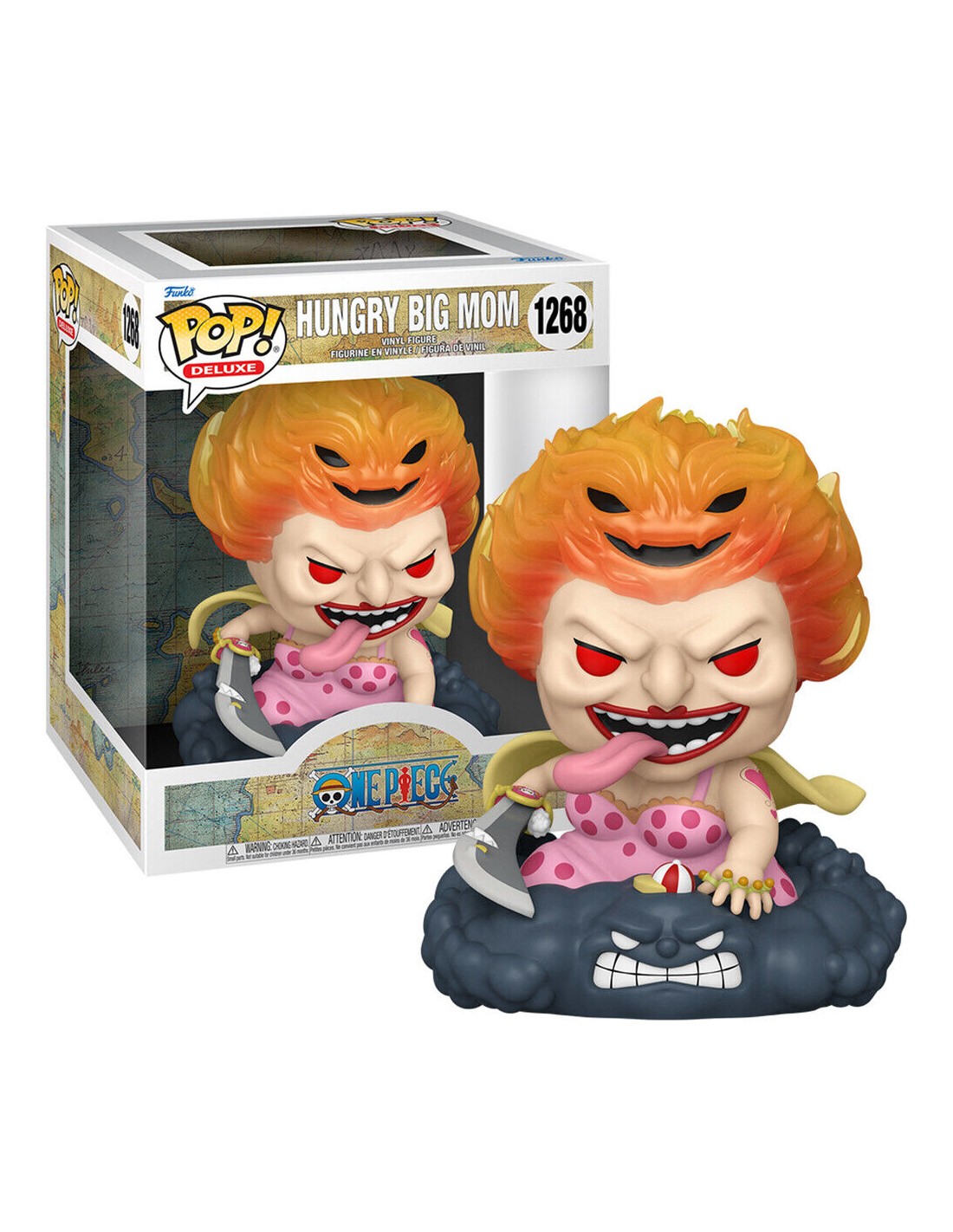 La Figura Funko Pop! Deluxe de Hungry Big Mom, basada en el anime One Piece, representa a Charlotte Linlin, conocida como Big Mom, en su forma hambrienta y colosal. Esta figura captura la esencia imponente y cómica de Big Mom durante su estado de ansiedad alimentaria, una representación memorable de su personaje en la serie.