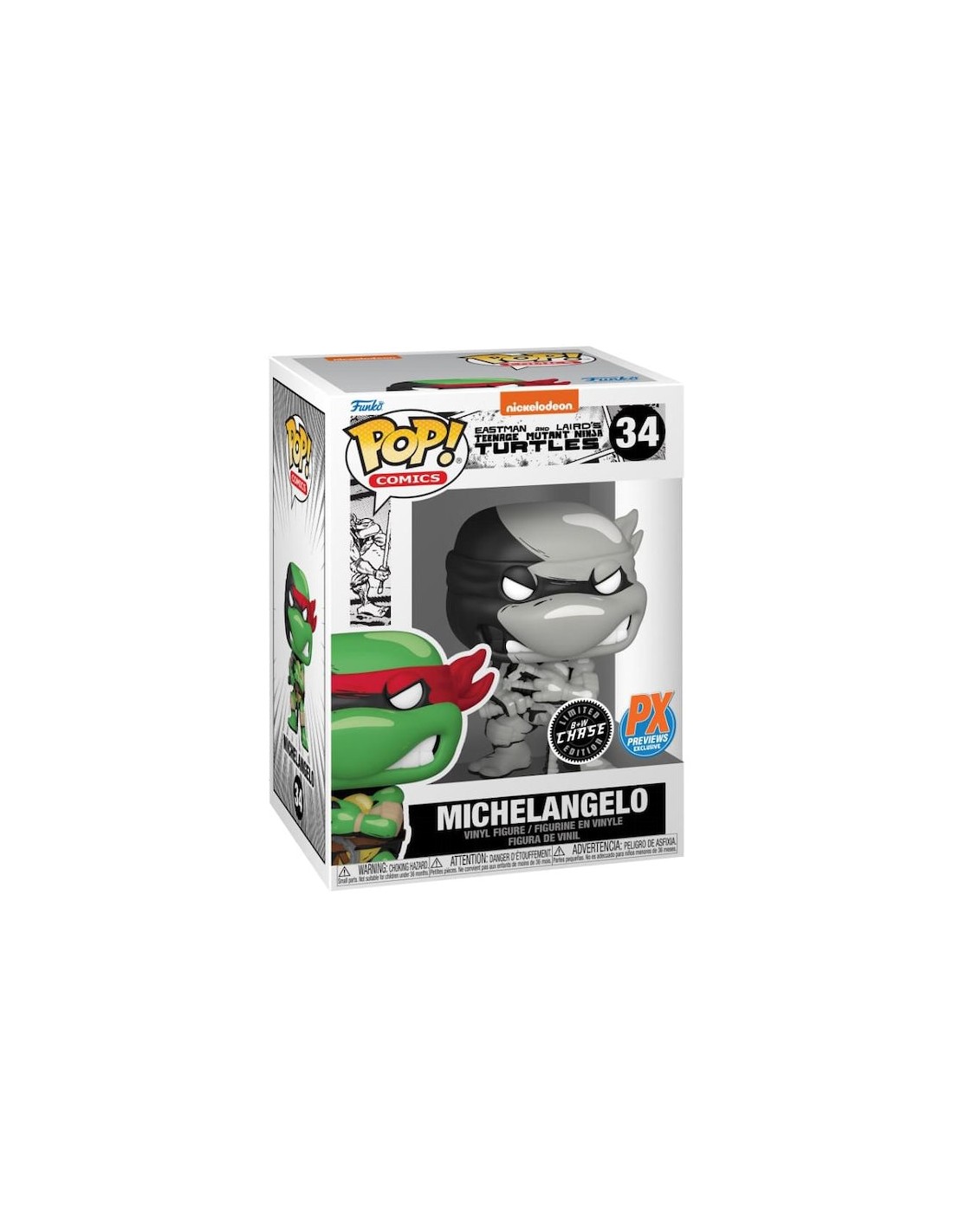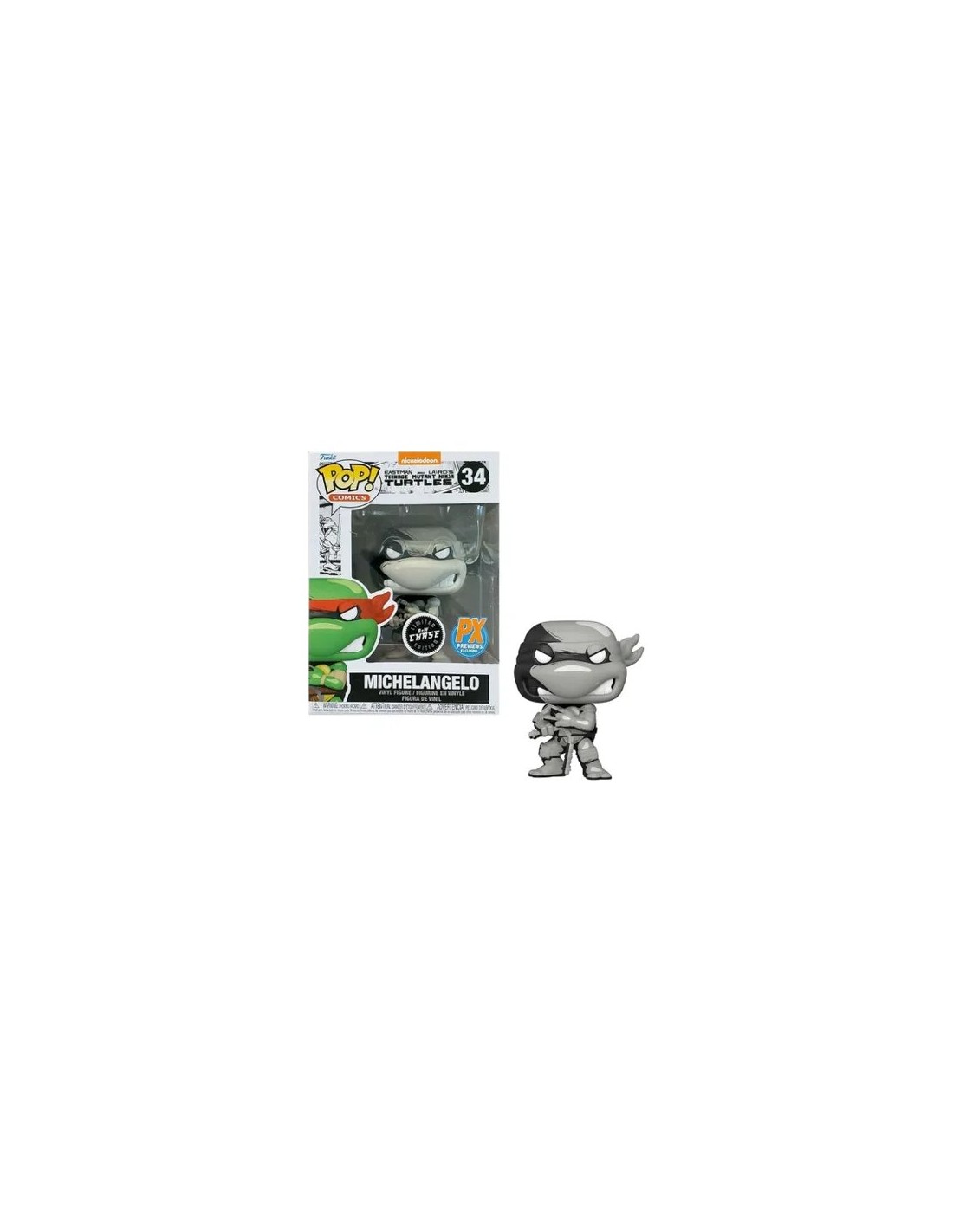 La Figura Funko Pop! de Michelangelo, basada en el cómic de Nickelodeon Teenage Mutant Ninja Turtles, es un coleccionable detallado que captura la esencia del querido miembro de las Tortugas Ninja. Identificada por el modelo 34 | 60653 Edición Chase, esta figura de vinilo muestra a Michelangelo con su postura distintiva y su clásico atuendo de luchador ninja, en tonalidades grises.
