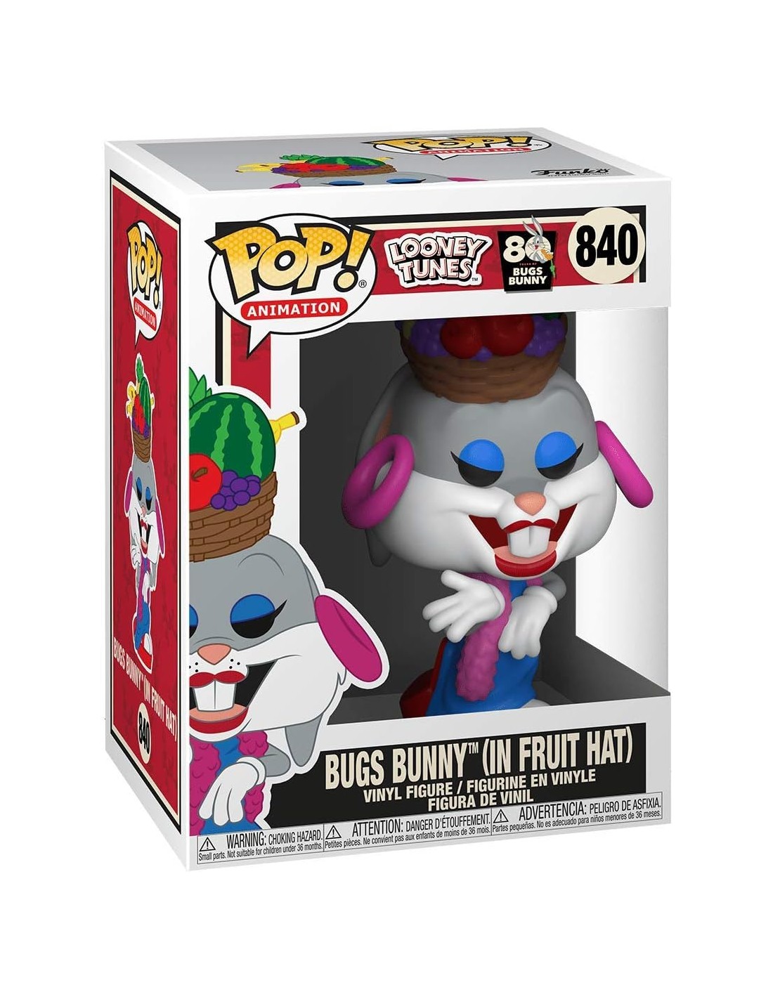 La figura Funko Pop! de Looney Tunes presenta a Bugs Bunny con un sombrero de fruta, recreando una de las escenas más icónicas de los dibujos animados. Este coleccionable, captura la esencia juguetona y traviesa del famoso conejo. Con su inconfundible sonrisa, Bugs Bunny es un ícono de la cultura pop, conocido por sus travesuras y sus frases clásicas como "¡Qué hay de nuevo, viejo!" y "¿Qué tal, doc?". Esta figura Funko Pop! es una adición encantadora para tu colección, representando la diversión y el ingenio característicos de Bugs Bunny en tu estantería.