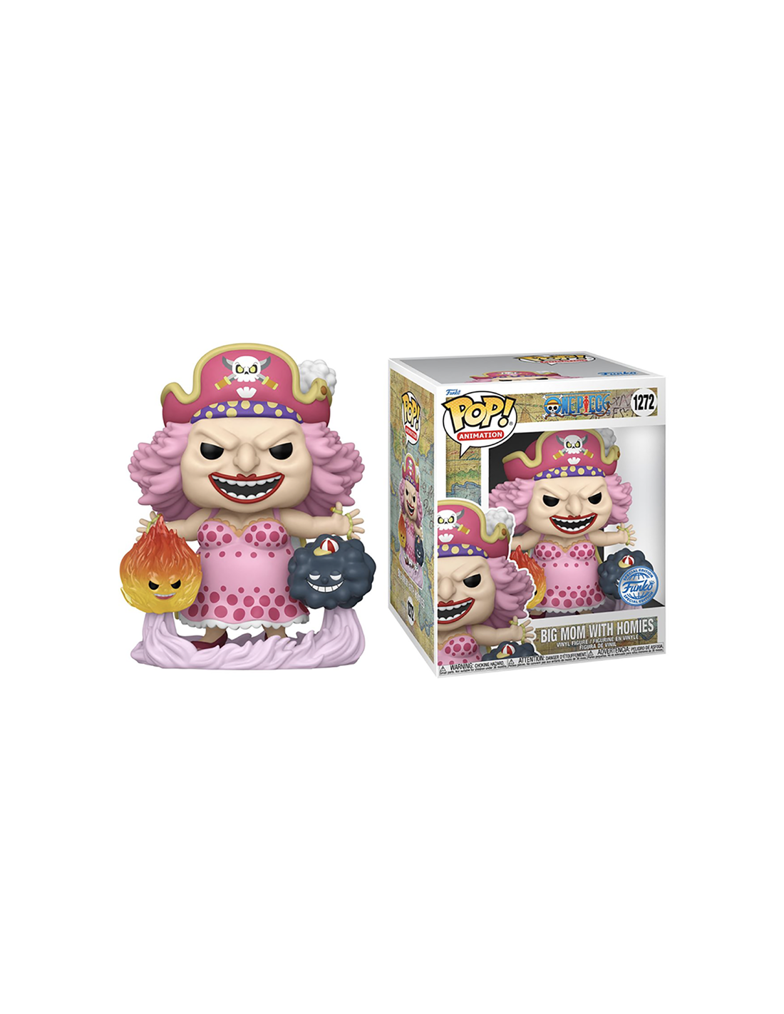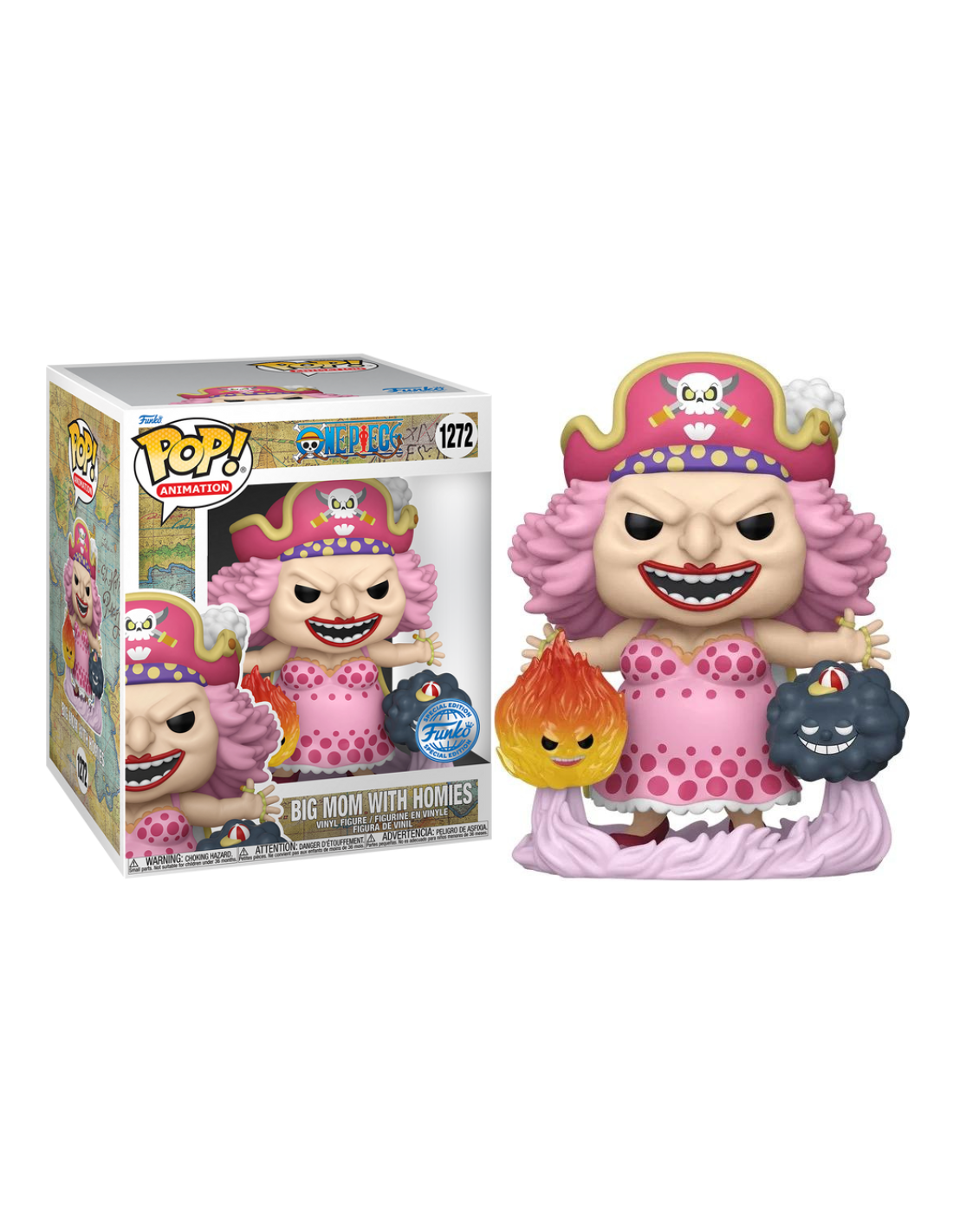 Adquiere la Figura Funko Pop! Deluxe de One Piece Big Mom con Homies (Modelo 1272 | 62700) Esta figura muestra a Big Mom, una de las prominentes antagonistas de One Piece, rodeada de sus característicos "Homies" en un diseño detallado y llamativo.