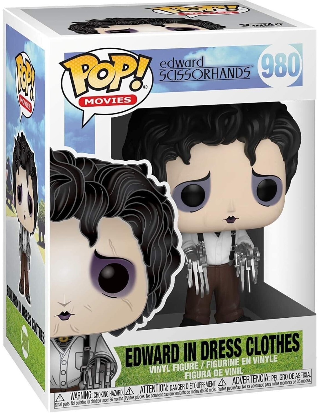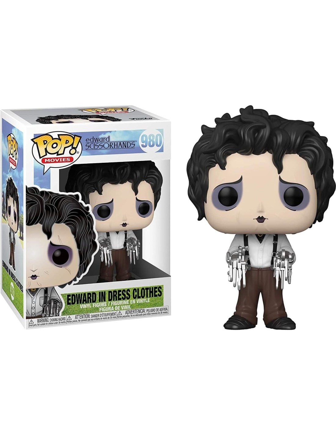 La Figura Funko Pop! de Eduardo Manostijeras con ropa de vestir, modelo 980 | 49698, ofrece una representación encantadora del inolvidable personaje interpretado por Johnny Depp en la película "Eduardo Manostijeras". Esta figura captura la esencia del personaje con su característico atuendo y pose distintiva.