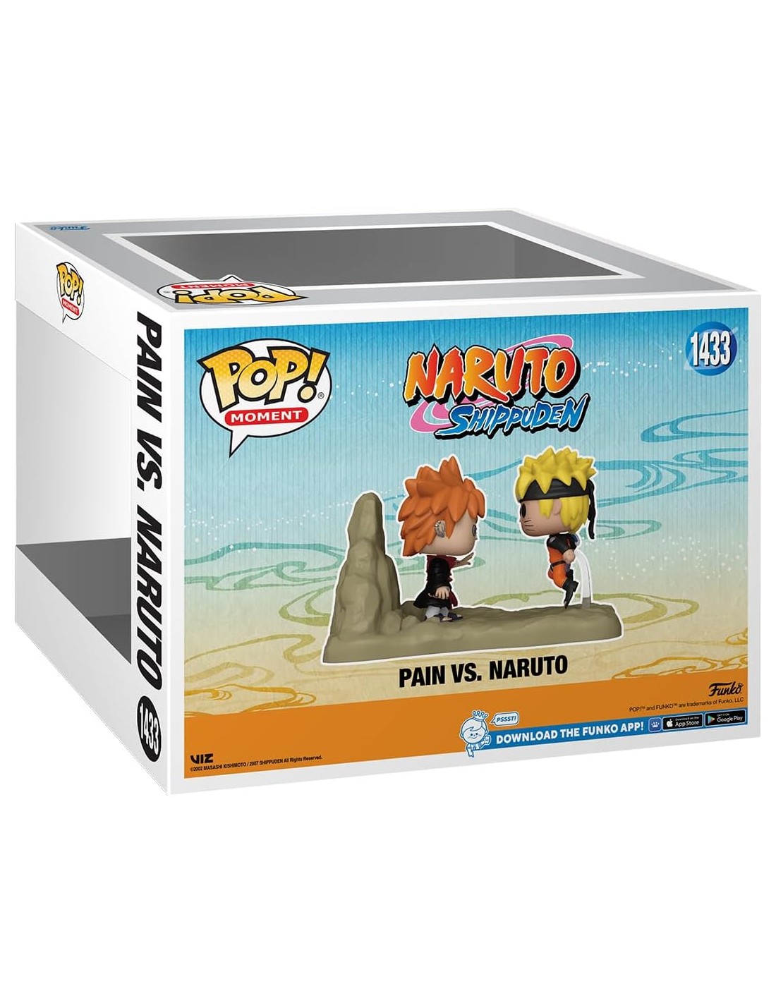 La figura Funko Pop! Moments de Pain vs Naruto, modelo 1433 y código 72074, captura uno de los enfrentamientos más memorables y emocionantes de la serie de anime Naruto. Este coleccionable trae a la vida el intenso duelo entre Naruto Uzumaki y Pain, dos personajes centrales en la trama, en una escena llena de acción y detalle.