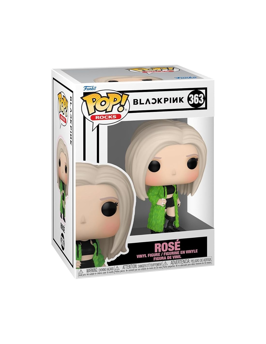 Explora el mundo del K-pop con la Figura Funko Pop! Rocks que rinde homenaje a la extraordinaria Rosé de Blackpink. El Modelo 363 | 72606 encapsula la gracia y el atractivo de esta destacada artista en una figura de vinilo compacta y coleccionable.