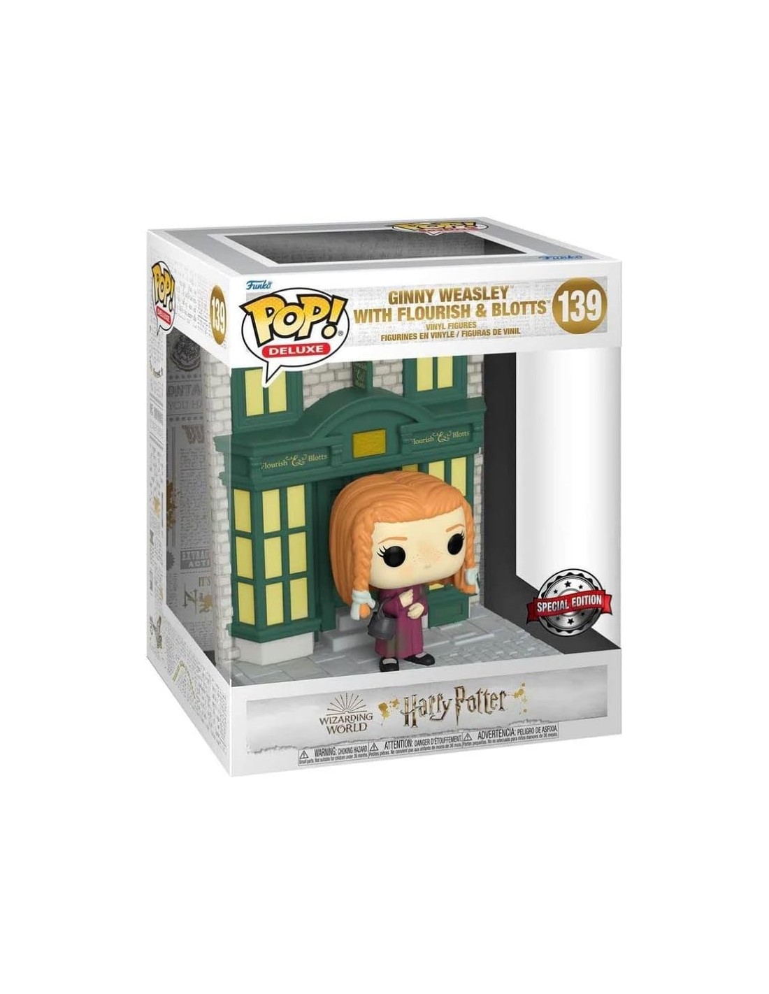 Realizada con el estilo distintivo de Funko Pop!, esta figura combina un diseño atractivo con un nivel de detalle que encantará tanto a coleccionistas como a fans de la saga. Presentada en una caja de ventana transparente que facilita su exhibición, la figura de Ginny Weasley en Flourish & Blotts es una adición valiosa para cualquier colección de memorabilia de Harry Potter, capturando la magia y la esencia de la serie de una manera encantadora. ¡Colecciona esta figura y revive la magia del mundo de Harry Potter!