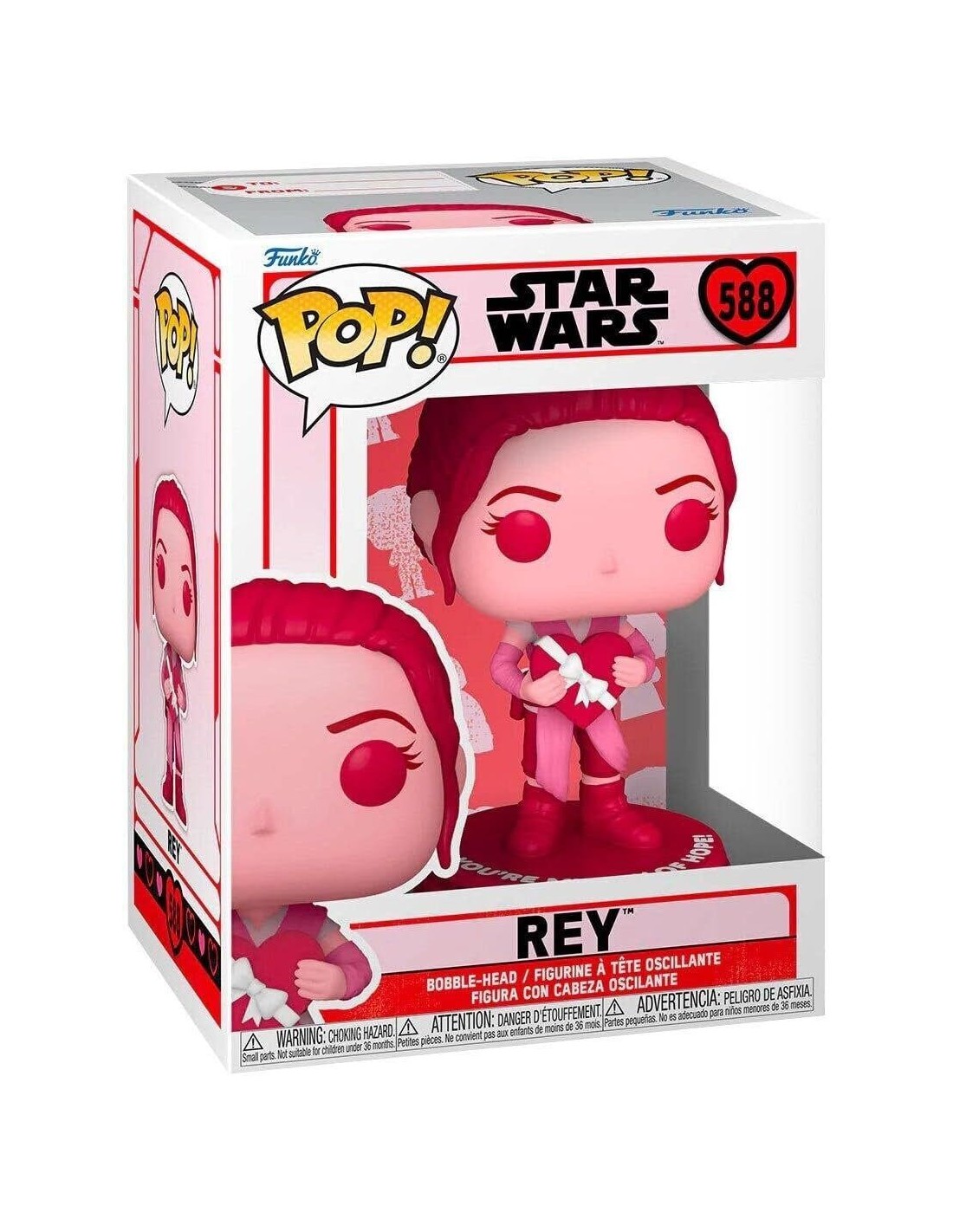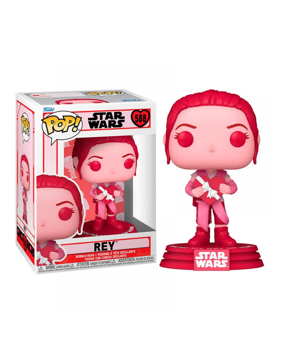 Conmemora el amor y la valentía en una galaxia muy, muy lejana con la Figura Funko Pop! Star Wars Rey Modelo 588, Edición Especial San Valentín. Esta encantadora figura Funko Pop! captura la esencia de Rey, la heroína icónica de la trilogía de secuelas de Star Wars, con un toque romántico y festivo.