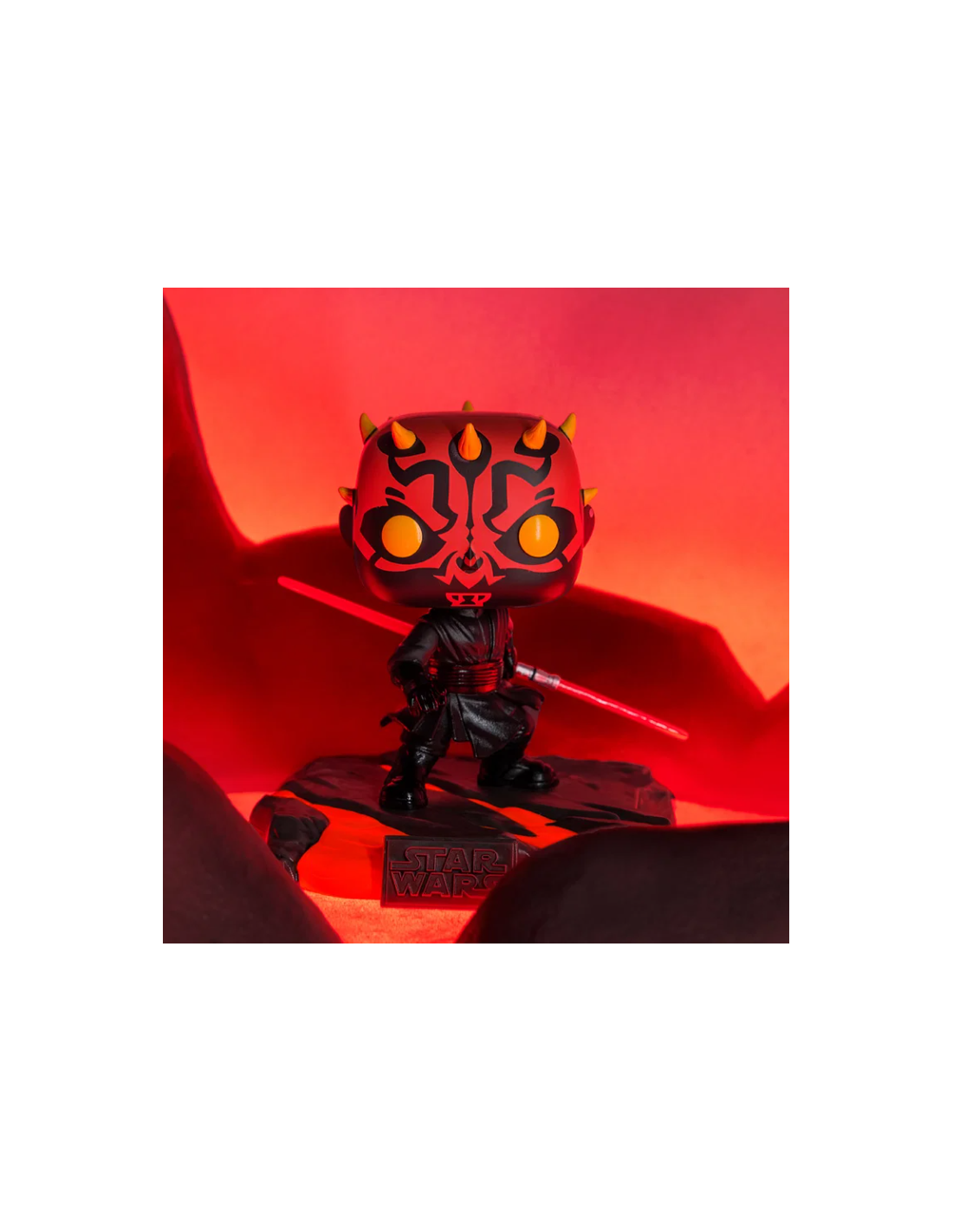 Hazte con la figura Funko Pop! de Darth Maul de la serie Red Saber hoy mismo y lleva a casa un pedazo del emocionante universo de Star Wars, lleno de acción, aventura y poder Sith."