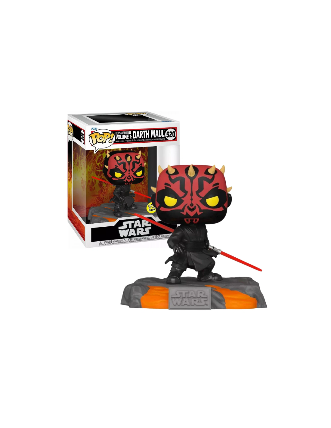 Sumérgete en el lado oscuro de la Fuerza con la figura Funko Pop! de Darth Maul de la serie Red Saber de Star Wars. Esta figura Funko Pop! Modelo 520 es una edición especial que brilla en la oscuridad, agregando un elemento único a tu colección.