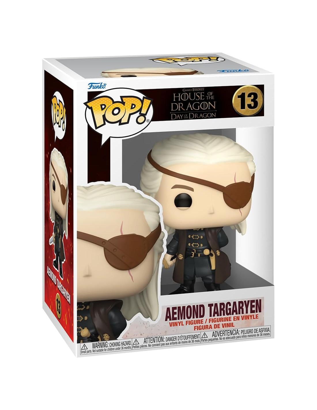 Embárcate en un viaje a través de los Siete Reinos con la figura Funko Pop! de Aemond Targaryen de la Casa del Dragón de Juego de Tronos. Este modelo 13 ofrece una representación detallada y cautivadora del valiente guerrero, capturando su aura de poder y determinación con precisión.