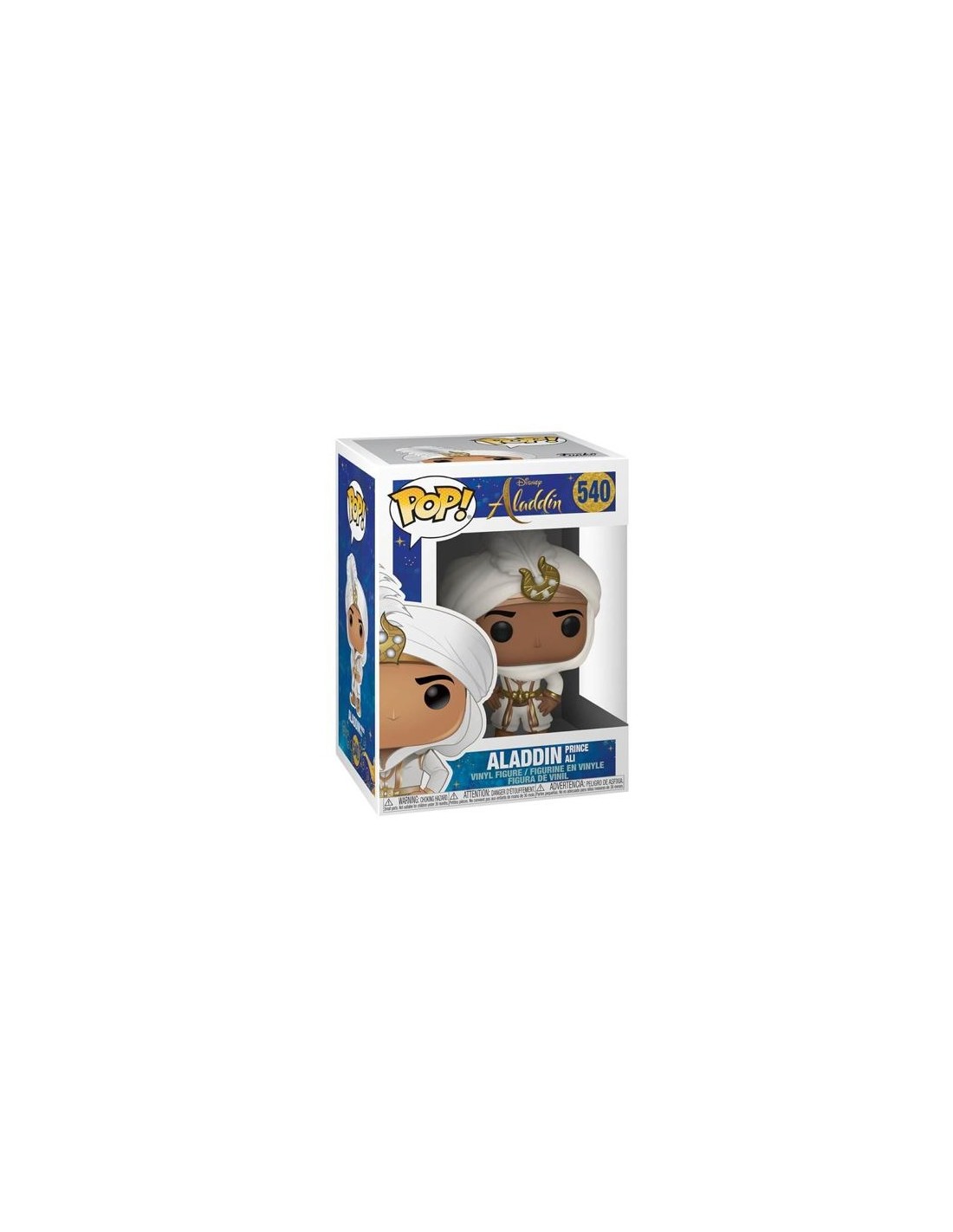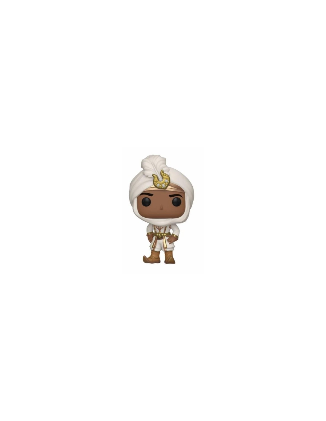 Con el estilo inconfundible de Funko Pop!, la figura captura al personaje luciendo su turbante y su traje de gala, tal como lo establece el Genio para la gran entrada en Agrabah. La figura lo presenta en una pose de confianza y majestuosidad, reflejando su intento de impresionar a la Princesa Jasmín, a pesar de su identidad oculta.