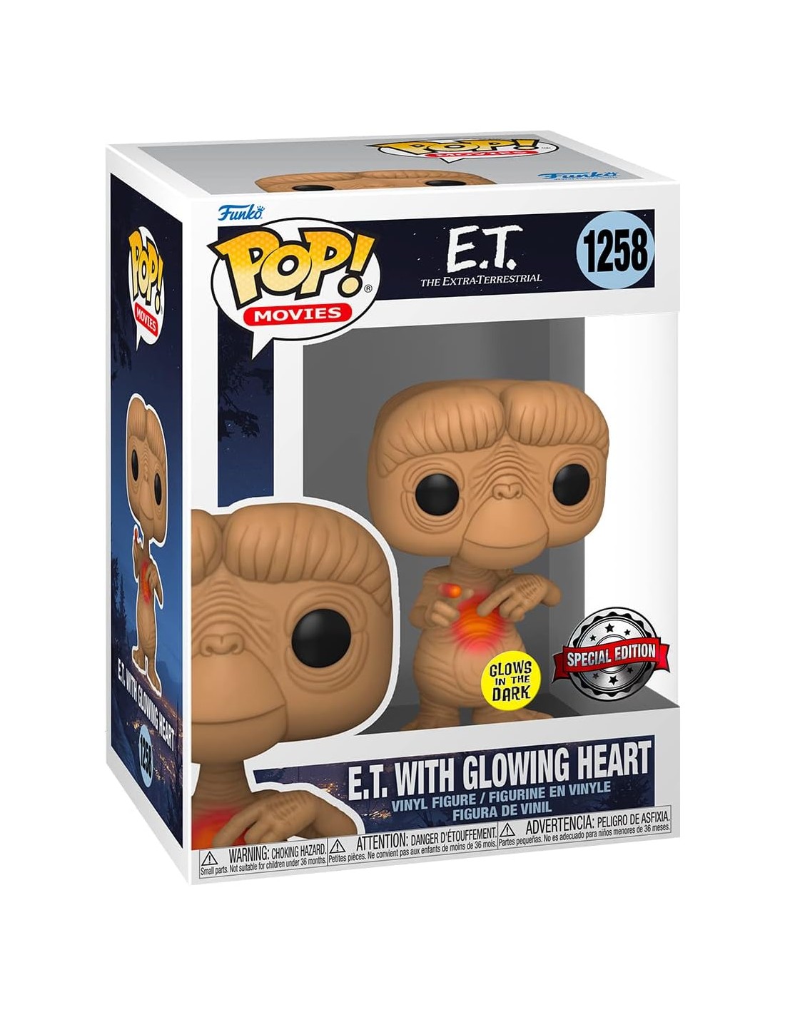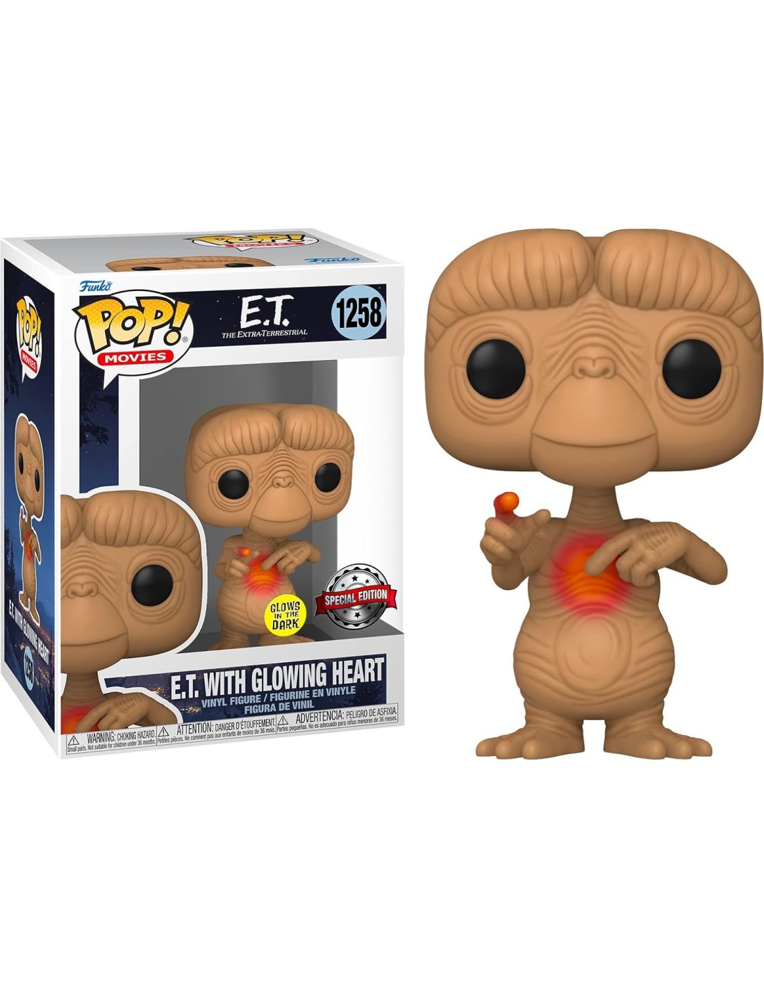 Revive los recuerdos de la querida película E.T. con la figura Funko Pop! de E.T. con corazón brillando. Esta edición especial, hecha por el 40 aniversario de la película, brilla en la oscuridad, capturando la esencia mágica del entrañable extraterrestre con su característico corazón iluminado.