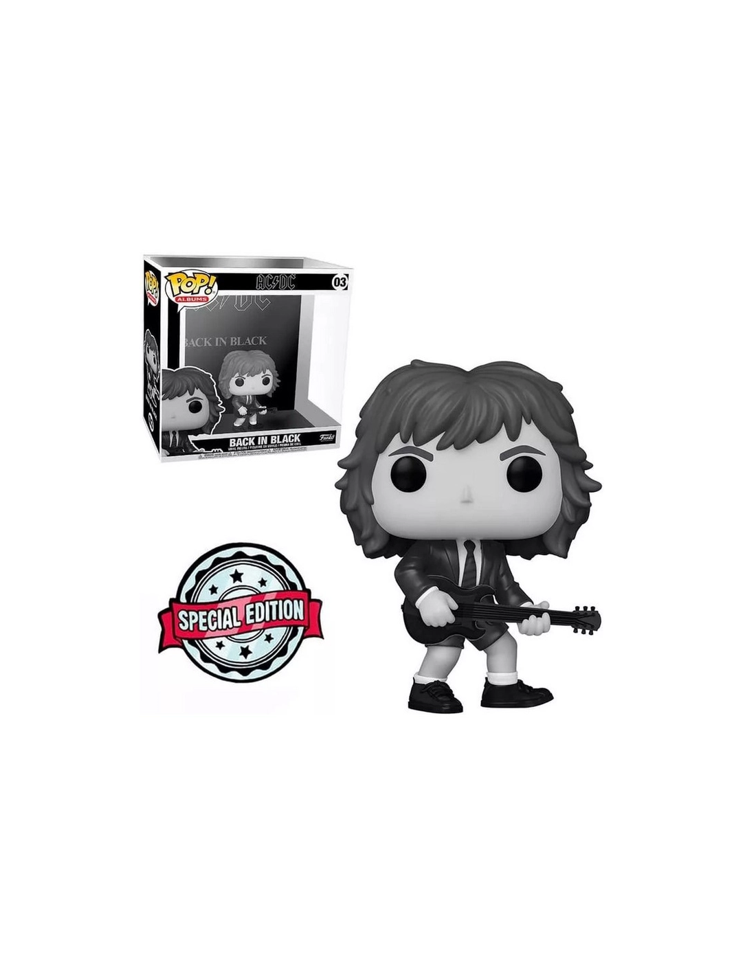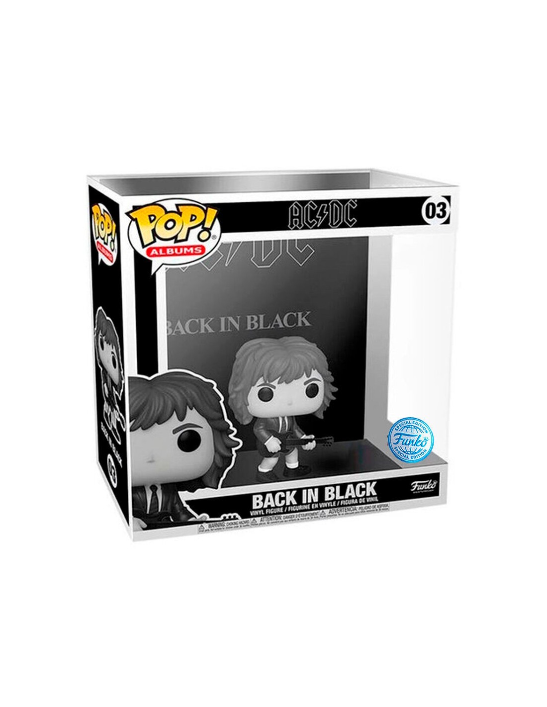 Esta figura es una incorporación imprescindible para cualquier colección de música o de Funko POP! Su diseño elegante y su calidad de construcción duradera la convierten en una pieza de exhibición impresionante para cualquier estante o vitrina. Ya sea que seas un fanático devoto de AC/DC o simplemente un amante del rock 'n' roll, esta figura es una forma perfecta de rendir homenaje a una de las bandas más influyentes de la historia de la música. ¡Añade un toque de actitud rockera a tu colección con la Figura Funko POP! Albums AC/DC Back in Black Modelo 03!