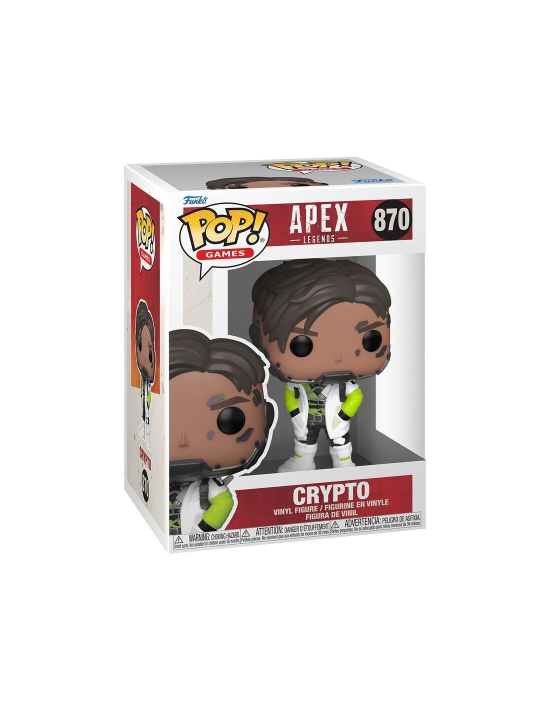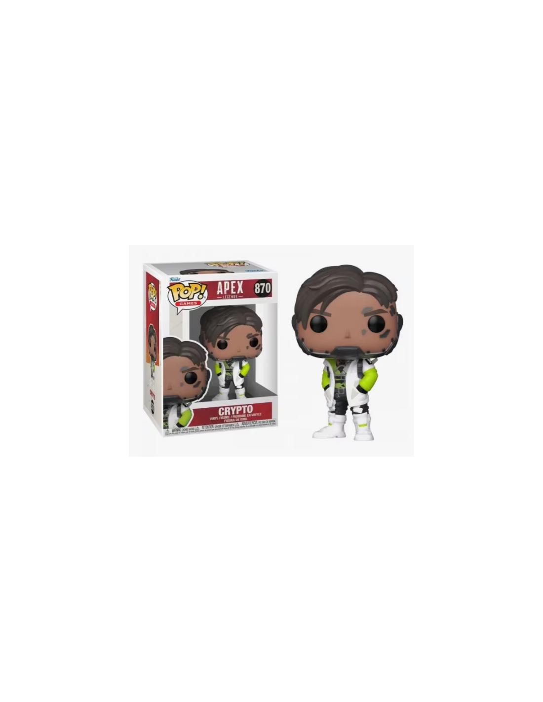 Sumérgete en el universo de Apex Legends con la Figura Funko Pop! de Crypto (Modelo 870 | 63998). Este vinilo detalla al astuto hacker conocido por su habilidad para manipular la tecnología y su deseo de descubrir la verdad detrás de los Juegos Apex.