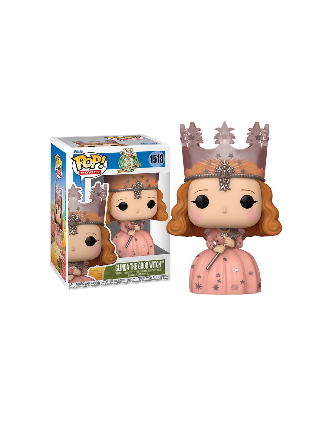 La Figura Funko Pop! de Glinda la Bruja Buena de El Mago de Oz, modelo 1518 (75974), en honor al 85 aniversario de la película, es una representación encantadora y detallada de uno de los personajes más icónicos del clásico cinematográfico. Esta figura Funko Pop! captura la esencia de Glinda con su postura majestuosa y su expresión llena de bondad.