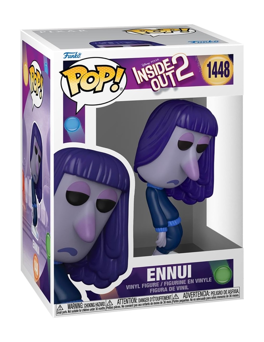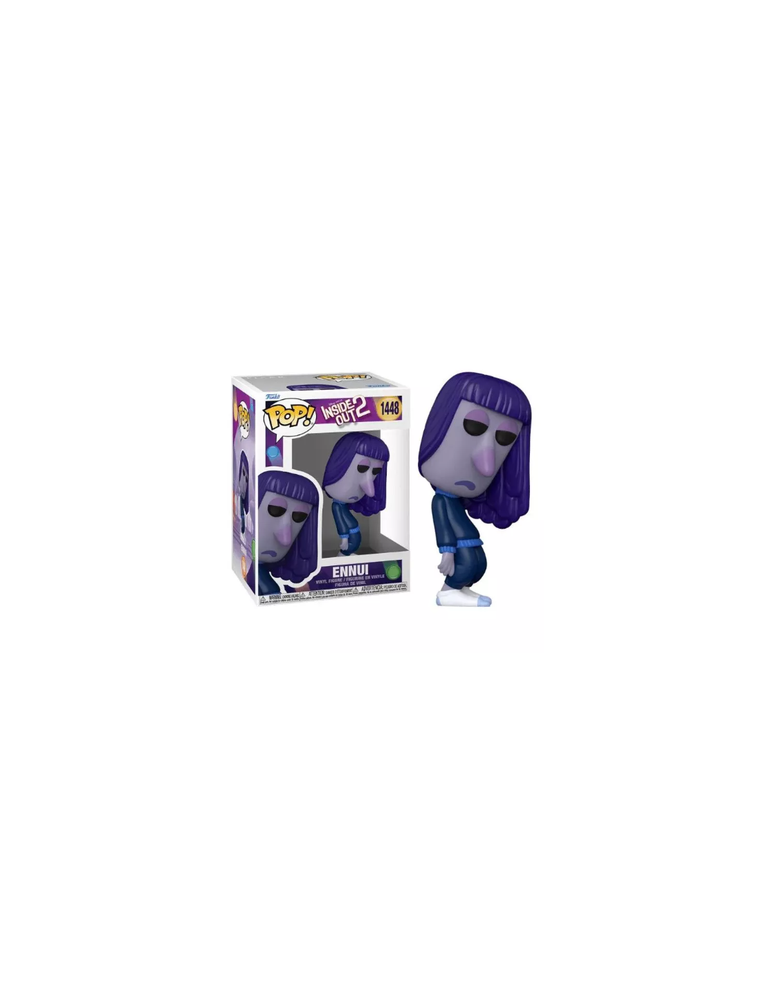 Esta figura Funko Pop! está diseñada con el estilo distintivo y adorable que caracteriza a todas las figuras Funko. Ennui es representado con una expresión y detalles que reflejan su personalidad única, haciéndolo un artículo imprescindible para los coleccionistas y seguidores de Inside Out 2.