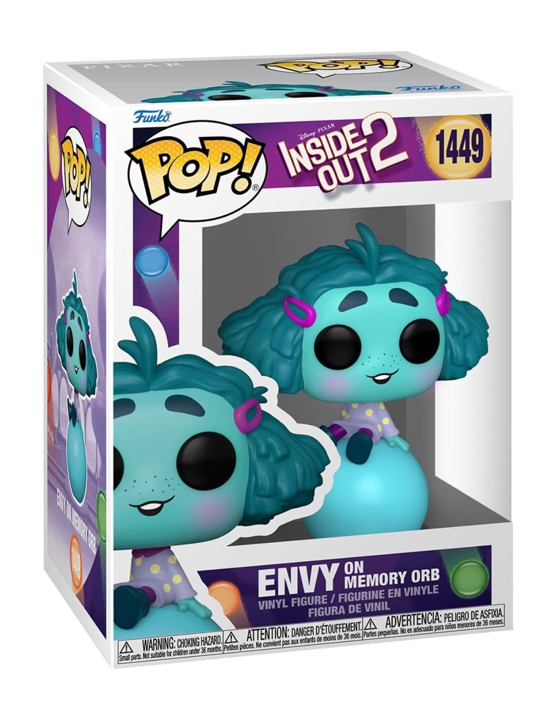 La figura está diseñada con el estilo distintivo y encantador de Funko Pop!, con detalles cuidadosamente esculpidos que capturan la personalidad única de Envy. Su expresión y postura reflejan perfectamente el carácter de la envidia, haciendo de esta figura una pieza fascinante para cualquier fanático de Inside Out 2.