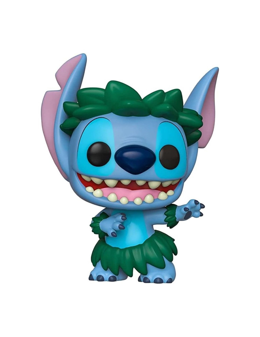 La figura de Hula Stitch está diseñada con gran detalle y precisión, reflejando la personalidad traviesa pero adorable de Stitch mientras se prepara para una divertida danza hula. Sus orejas grandes, sonrisa característica y pose alegre lo convierten en una pieza imprescindible para cualquier coleccionista de Funko Pop o fan de Lilo & Stitch.