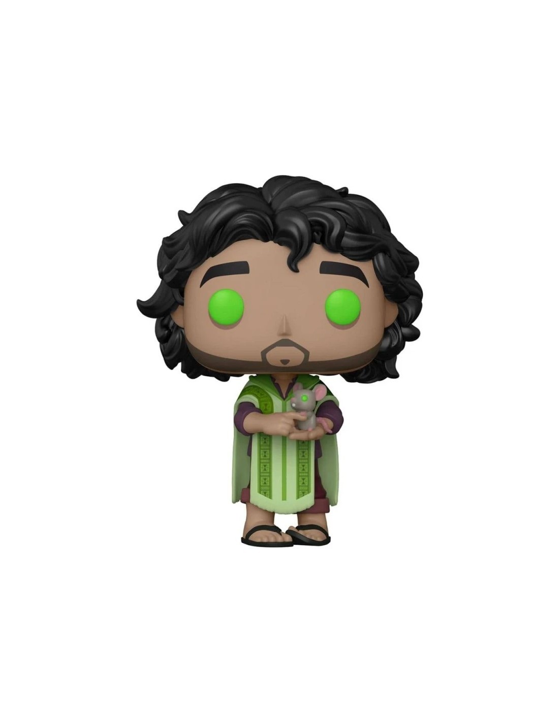 La figura Funko Pop! de Bruno Madrigal mide aproximadamente 10 cm de altura y está meticulosamente diseñada para reflejar su distintiva apariencia. Desde su poncho verde oscuro hasta su cabello alborotado y expresión reflexiva, cada detalle ha sido cuidadosamente esculpido y pintado para mantenerse fiel a su representación en la película. La capacidad de brillar en la oscuridad le añade una dimensión mágica, permitiendo que Bruno cobre vida en ambientes oscuros, tal como su personaje en Encanto.