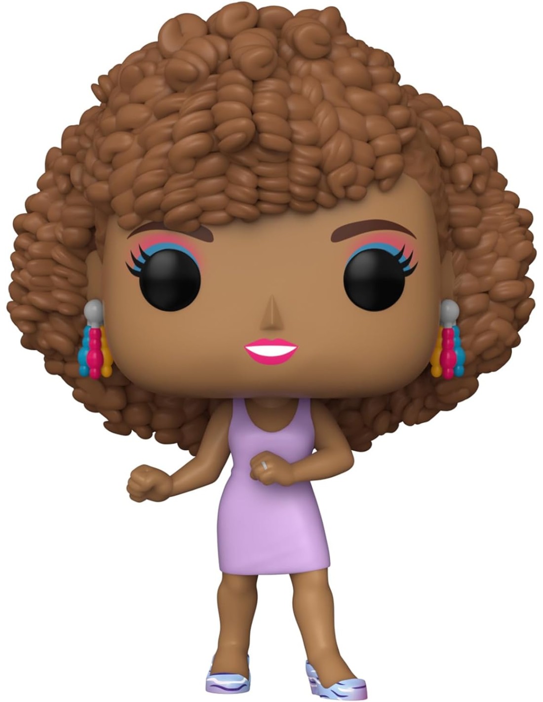 La figura Funko Pop! de Whitney Houston mide aproximadamente 10 cm de altura y está diseñada con el estilo distintivo de Funko, que combina rasgos chibi adorables con detalles precisos. Desde su elegante vestuario hasta su peinado característico, cada detalle ha sido cuidadosamente esculpido y pintado para capturar la esencia de Whitney en sus momentos más icónicos.
