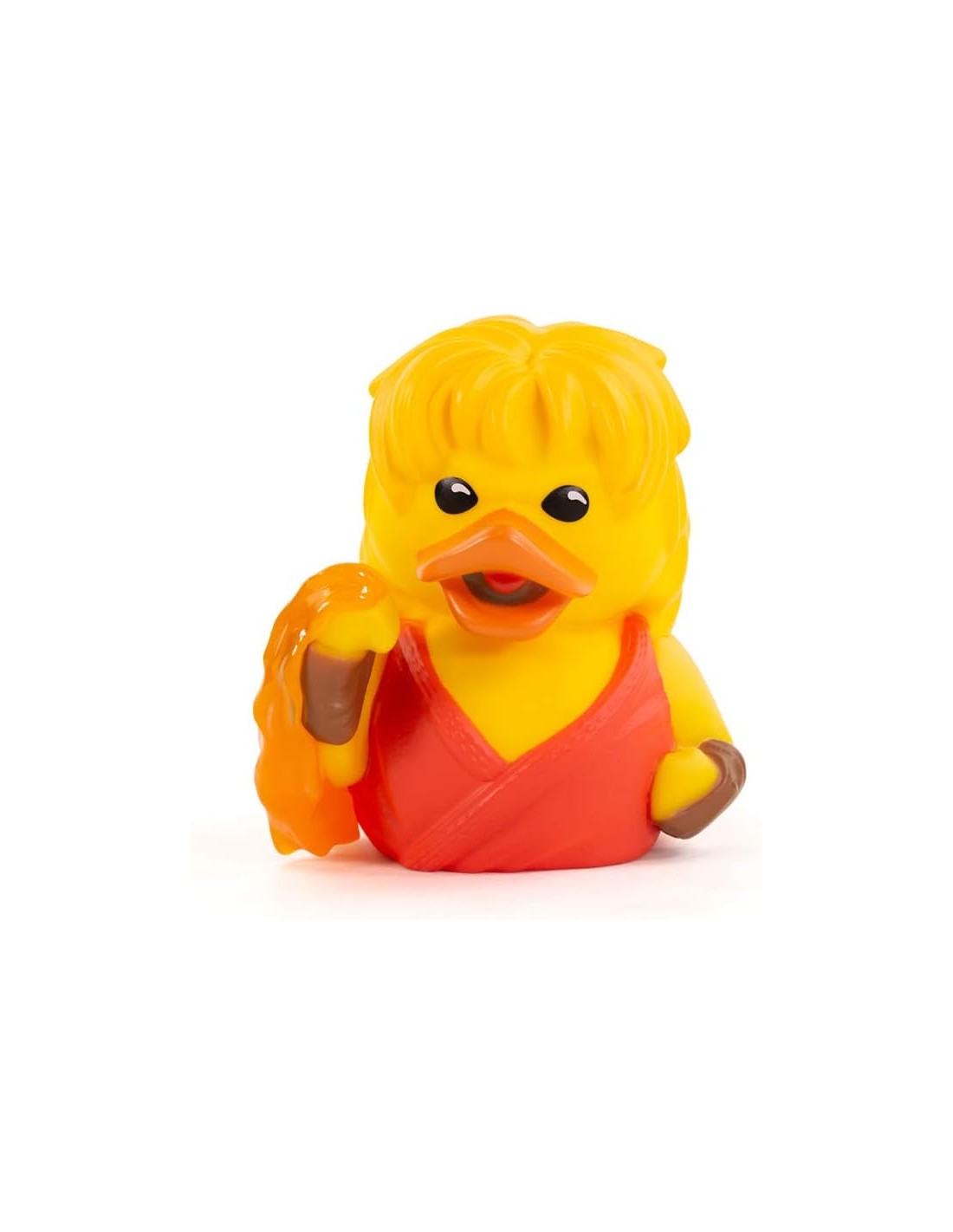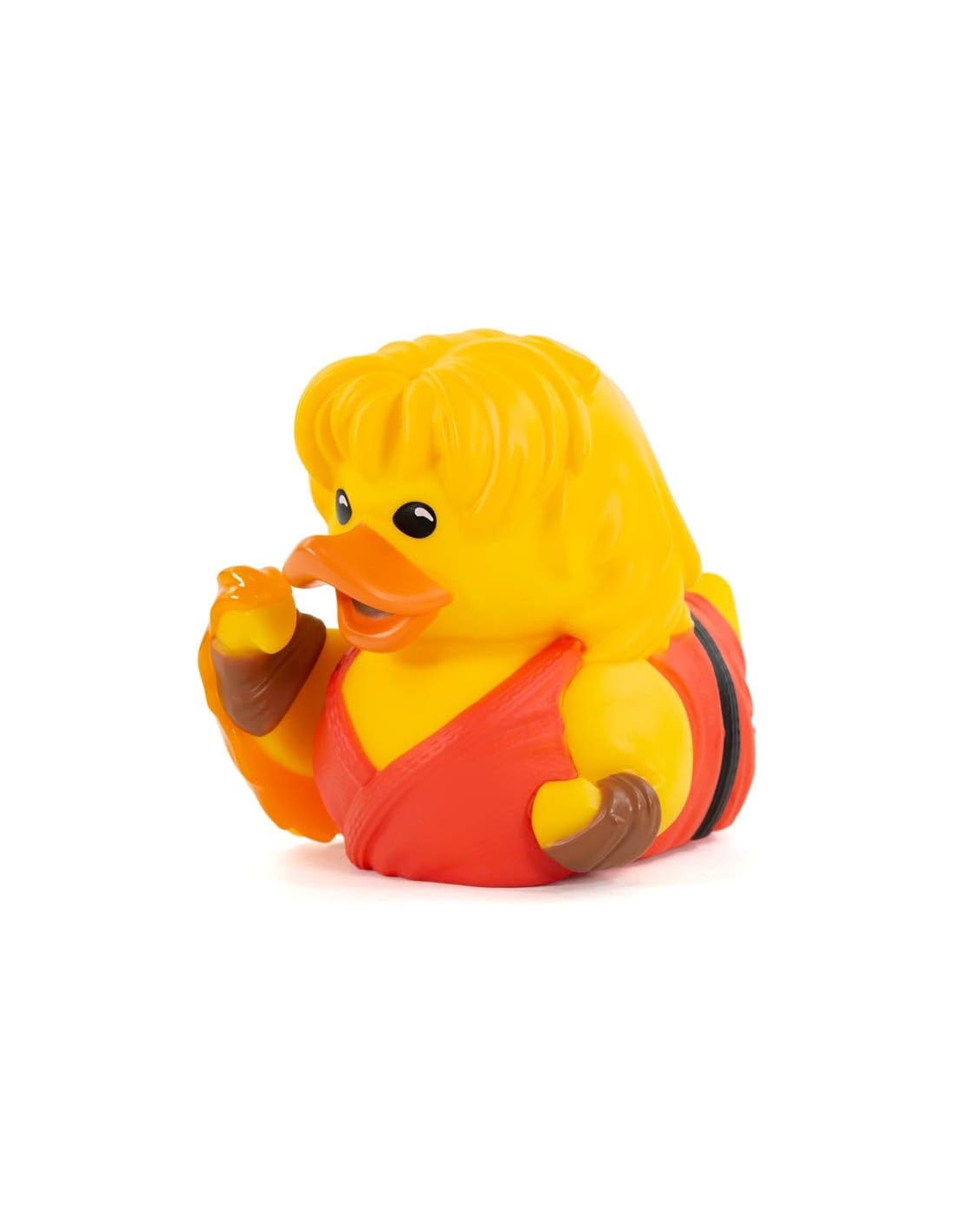El diseño de este pato Tubbz captura la esencia de Ken con su distintivo traje rojo de karate y su característico cabello rubio. Cada detalle, desde su postura de combate hasta su expresión determinada, ha sido cuidadosamente elaborado para reflejar la apariencia y la personalidad del personaje, haciendo de este pato de goma una pieza única y especial en cualquier colección.