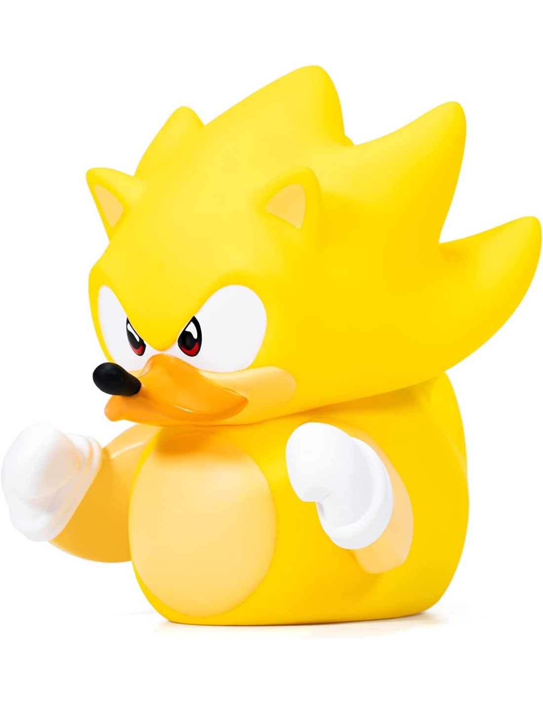 El diseño de este pato Tubbz captura la esencia de Súper Sonic con su característico color dorado y su expresión decidida. Cada detalle, desde su postura dinámica hasta su distintivo cabello erizado, ha sido cuidadosamente elaborado para reflejar la apariencia y la personalidad del personaje, haciendo de este pato de goma una pieza única y especial en cualquier colección.