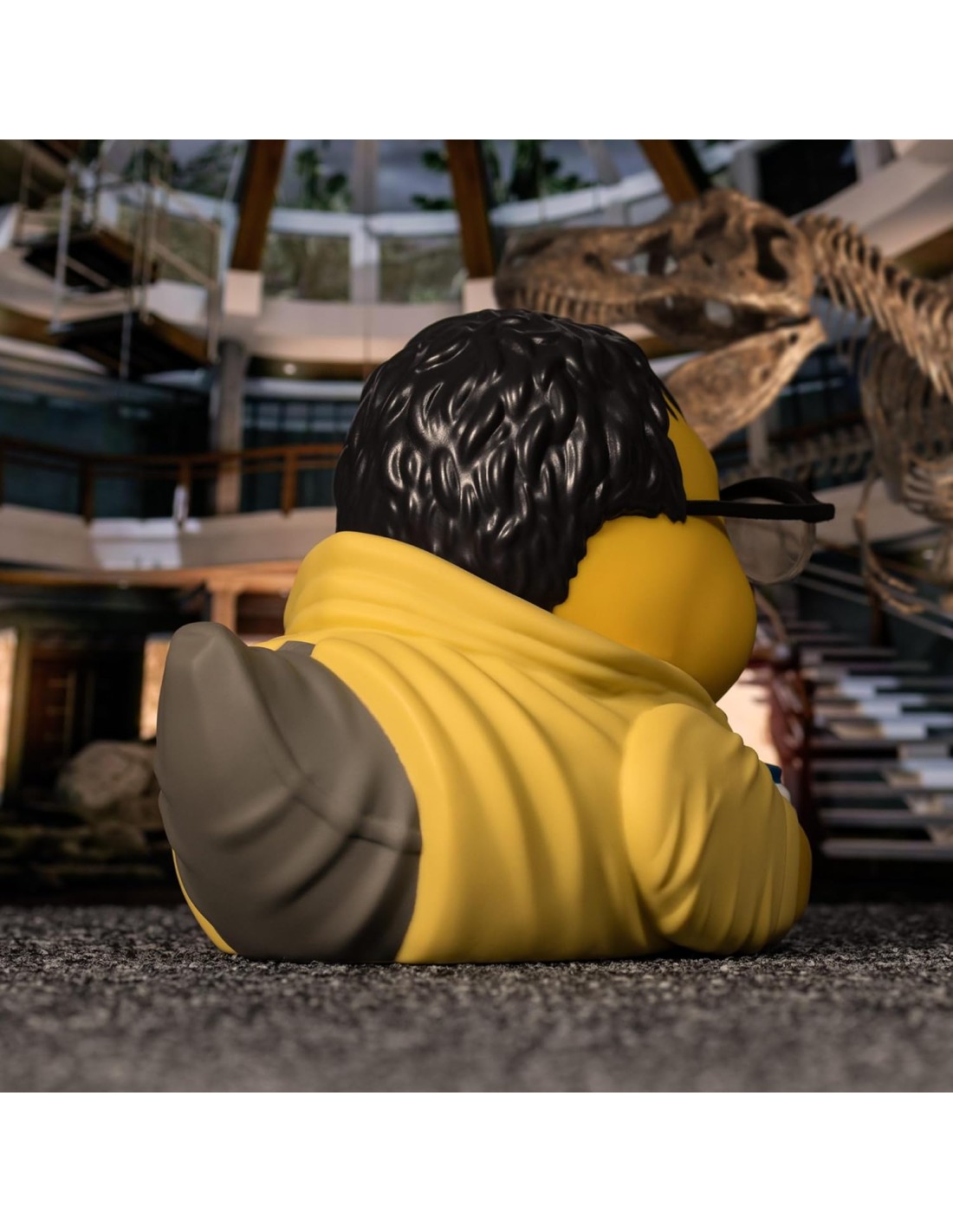 La figura incluye las distintivas gafas redondas de Nedry. El pato tiene el cabello rizado y corto que caracteriza a Dennis Nedry en la película. El pato de goma puede tener una expresión traviesa o astuta, reflejando la personalidad de Nedry en la película.