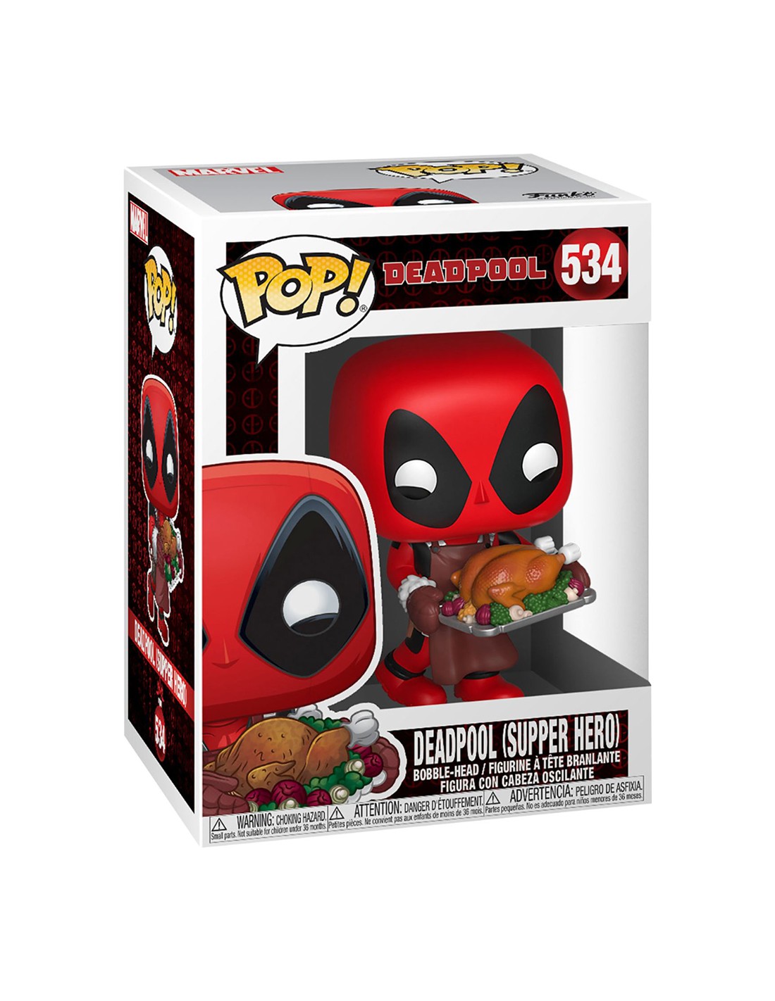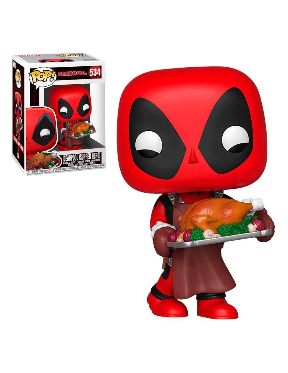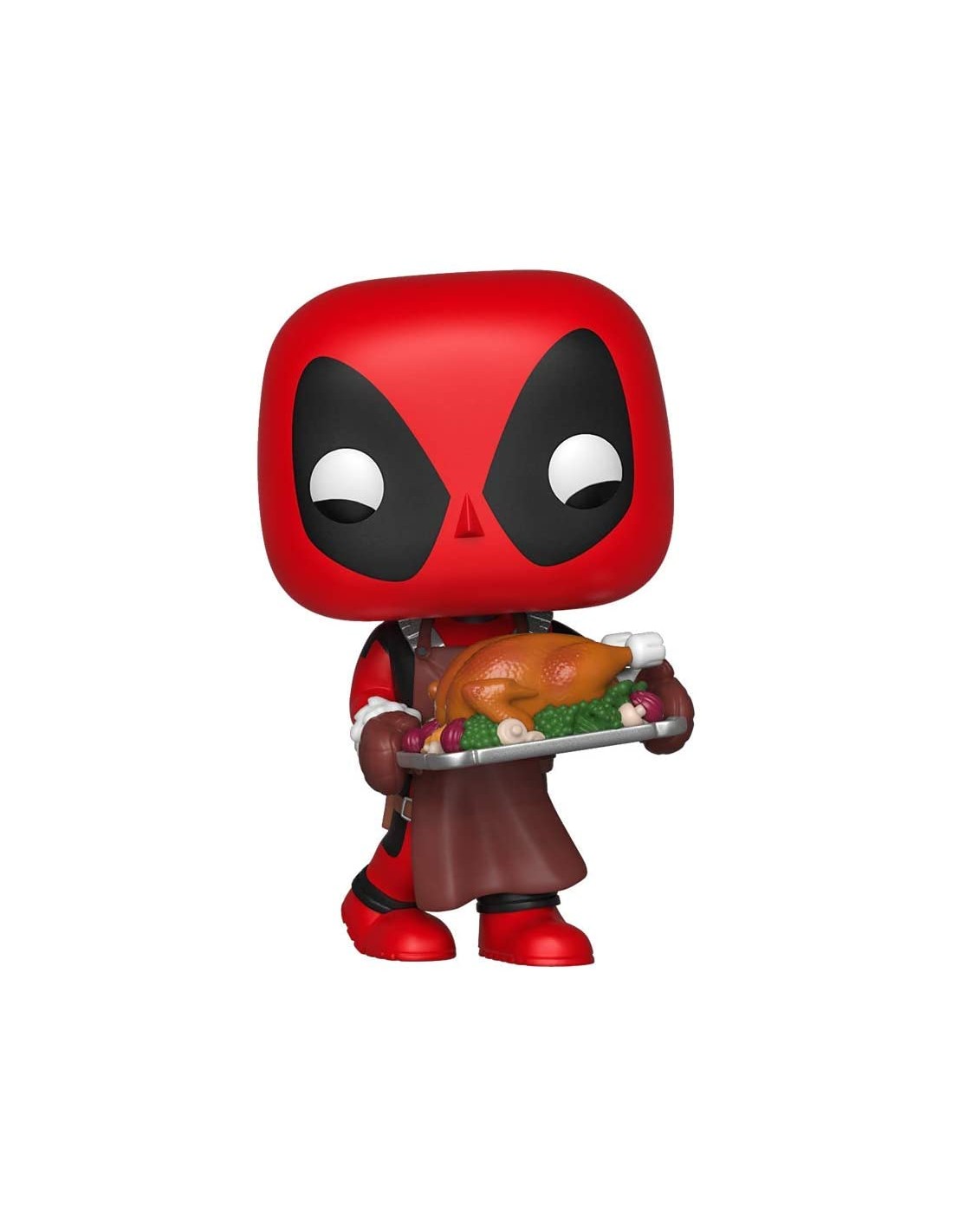 La Figura Funko Pop! Marvel Deadpool Deadpool Superhéroe Modelo 534 | 43337 es una joya imprescindible para cualquier fan de Marvel y coleccionista de Funko Pop! Esta figura muestra a uno de los personajes más famosos del universo Marvel, Deadpool en una pose encantadora llevando una bandeja de comida con un pavo.