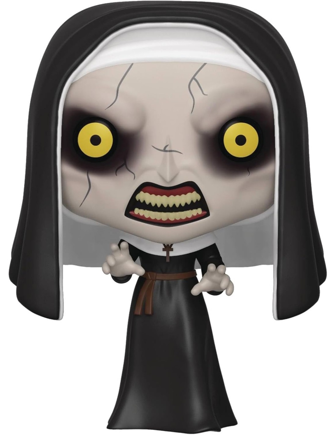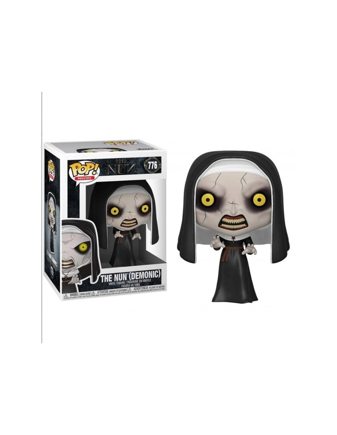 La calidad y el detalle de esta figura Funko Pop! son excepcionales, desde los pliegues del hábito hasta la textura de la piel y los ojos penetrantes, que contrastan fuertemente con la oscuridad del resto de la figura. Es una pieza que destaca en cualquier colección, no solo por su diseño detallado, sino también por su capacidad de evocar la atmósfera espeluznante de la película.