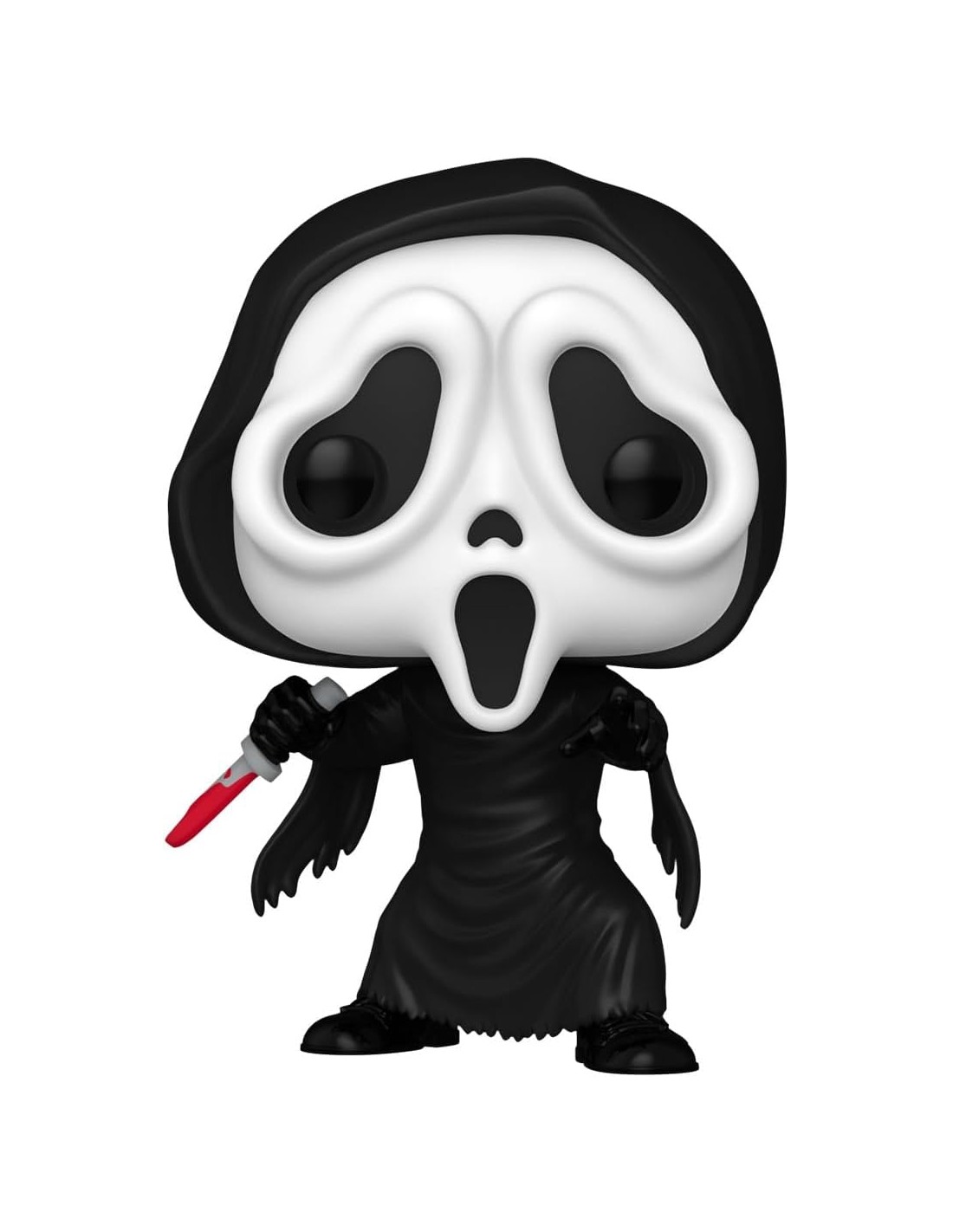 Ghost Face no solo es un símbolo de terror, sino también de la sátira y el humor negro que define a la saga Scream. Esta figura Funko Pop! captura esa dualidad con su diseño estilizado, que mantiene la esencia terrorífica del personaje, pero con un toque de la estética encantadora y coleccionable que caracteriza a los productos Funko.