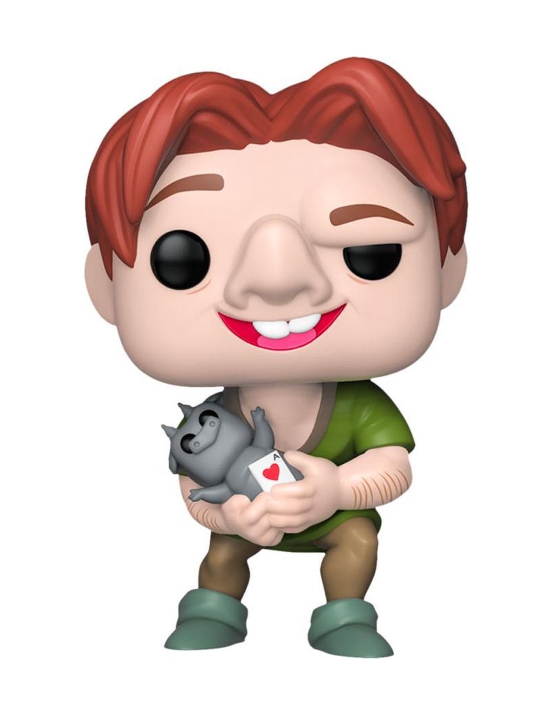 Con una altura aproximada de 10 cm, esta figura de vinilo muestra a Quasimodo con su característico rostro gentil y su joroba, vestido con su atuendo verde simple pero emblemático. Quasimodo está representado en una pose humilde, sosteniendo una pequeña gárgola, uno de sus leales amigos en la catedral de Notre Dame. Los detalles meticulosamente esculpidos, como sus grandes ojos tristes y su expresión de esperanza, capturan el espíritu del personaje que ha tocado los corazones de tantos.