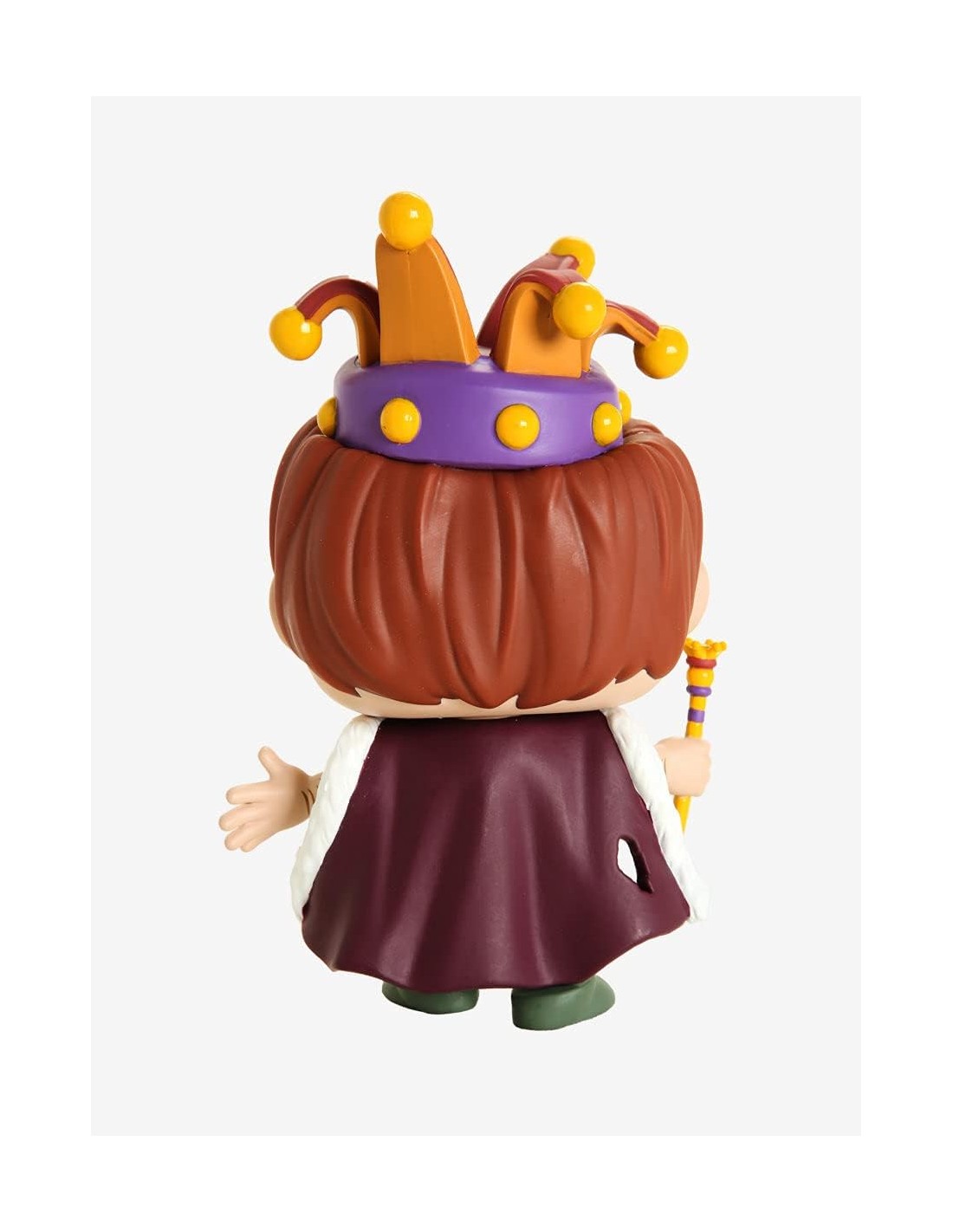 Con una altura aproximada de 10 cm, esta figura de vinilo muestra a Quasimodo vestido con una elaborada capa púrpura y una corona dorada, símbolos de su coronación como Rey de los Bufones durante el Festival de los Locos. La figura captura perfectamente los detalles de su atuendo festivo, desde la textura de la capa hasta los detalles de la corona, así como su expresión de alegría mezclada con asombro.