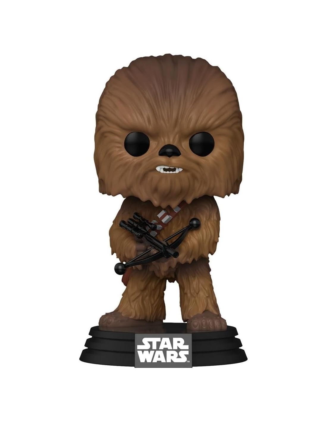 Esta figura de vinilo, de aproximadamente 9 cm de altura, captura a Chewbacca en todo su esplendor. Con su espeso pelaje marrón recreado en detalle, Chewie se muestra en una pose clásica, empuñando su característico arco-láser, siempre listo para la batalla. La expresión en su rostro refleja su carácter decidido y protector, mientras que su cinturón y su bandolera están recreados con precisión, completando su emblemático aspecto.