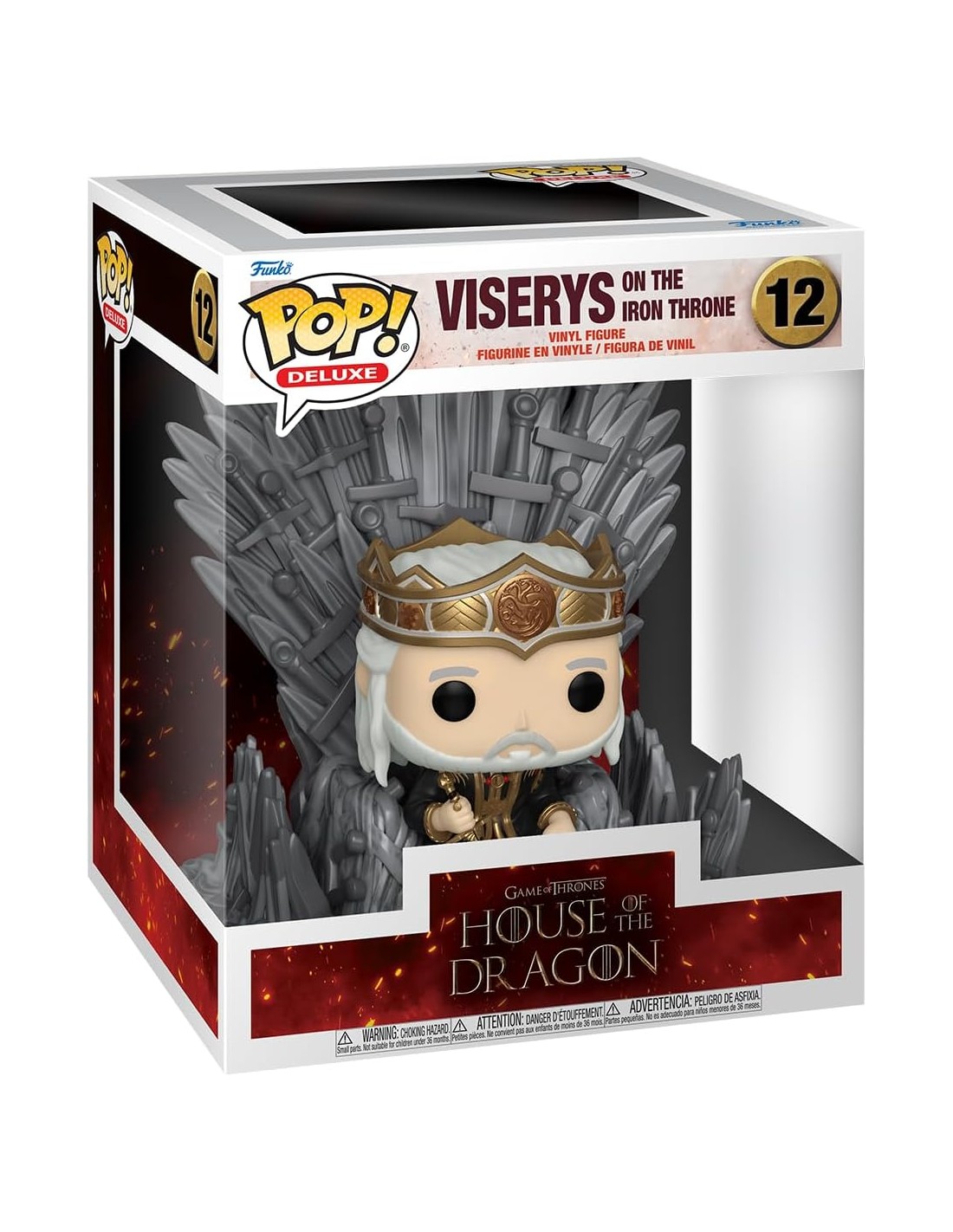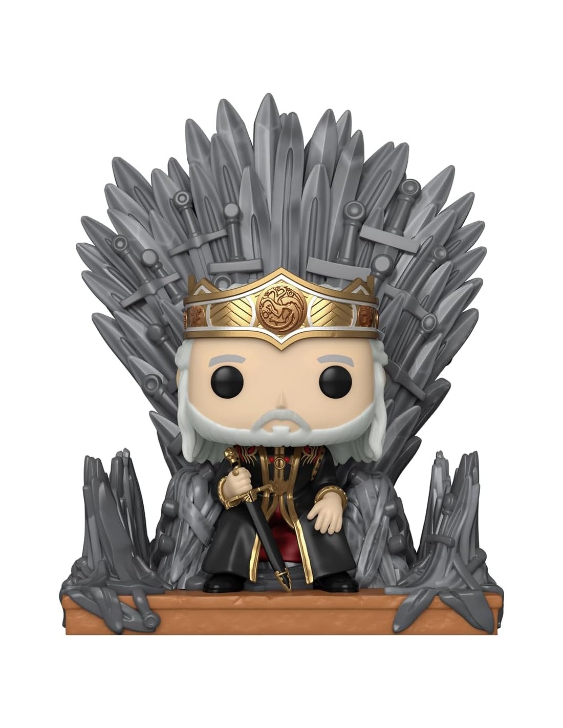 La figura Funko Pop! Televisión La Casa del Dragón Viserys en trono (Modelo 12 | 76470) es una impresionante representación del rey Viserys I Targaryen, uno de los personajes clave en la precuela de Juego de Tronos, La Casa del Dragón. Esta figura captura al rey Viserys sentado en el icónico trono de hierro, un símbolo de poder y conflicto en los Siete Reinos de Westeros.