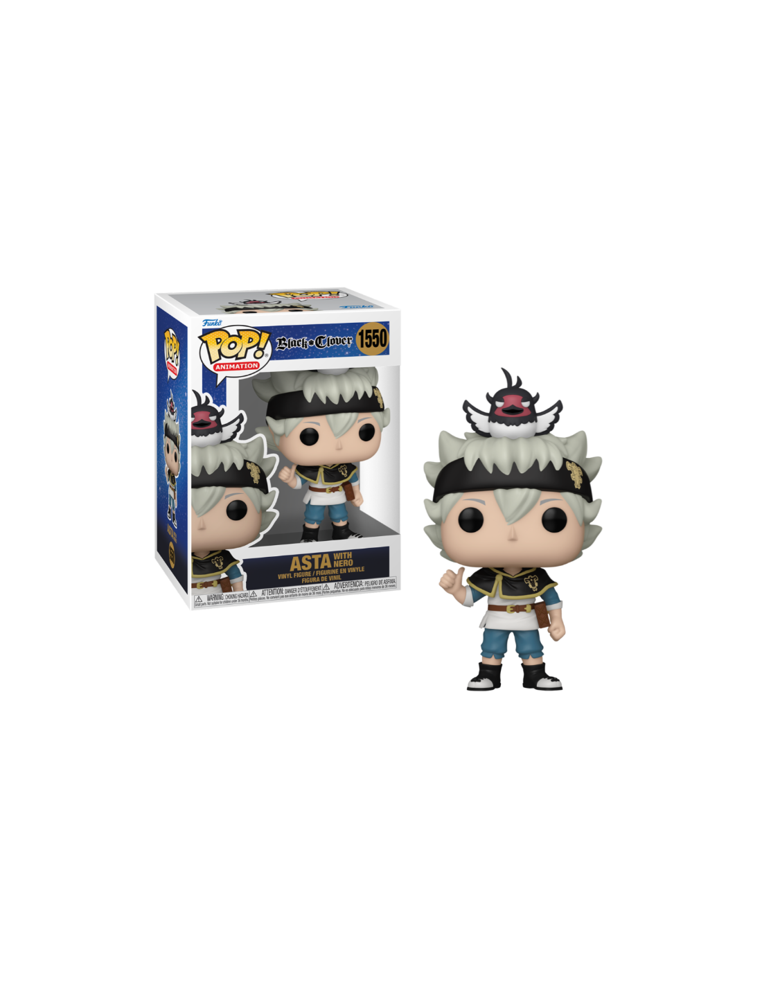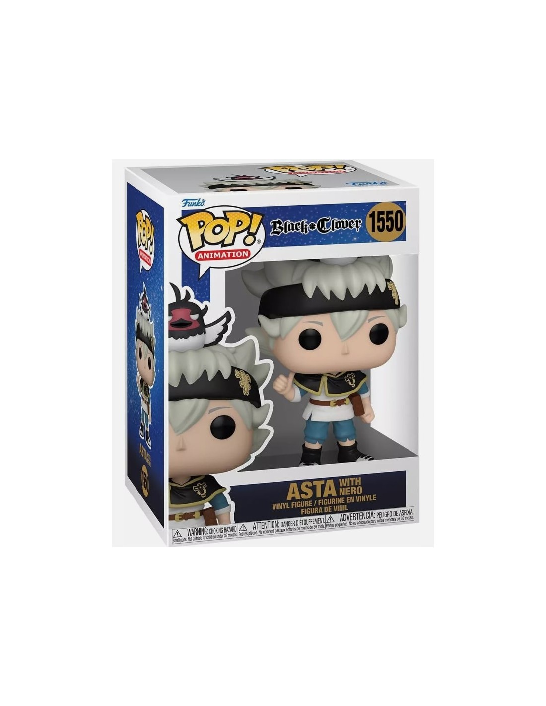 La figura Funko Pop! Animación Black Clover Asta con Nero (Modelo 1550 | 72115) es una representación dinámica y detallada de Asta, el protagonista del popular anime Black Clover, acompañado por Nero, el pequeño pero significativo pájaro que lo sigue en sus aventuras. Esta figura captura la esencia de Asta en su búsqueda por convertirse en el Rey Mago, a pesar de no tener ninguna habilidad mágica, y su inquebrantable determinación que lo convierte en un personaje amado por los fanáticos.