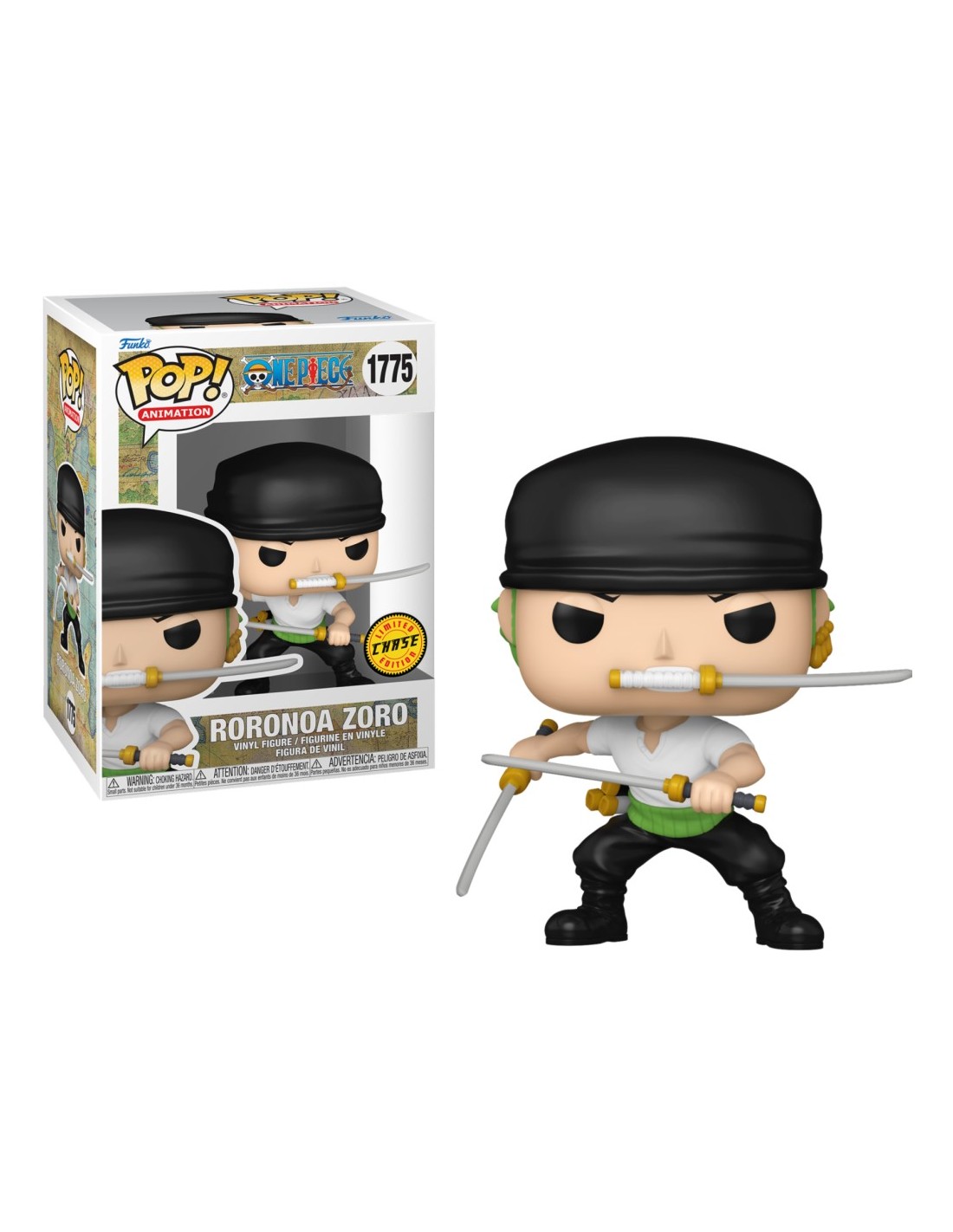 El espadachín más fuerte de los Sombreros de Paja, Roronoa Zoro, llega en formato Funko Pop! en su edición Chase para deleite de todos los fans de One Piece. Esta figura captura a la perfección la determinación de Zoro, con sus tres espadas en mano y una pose desafiante. Conocido por su lealtad a Luffy y su obsesión por convertirse en el mejor espadachín del mundo, Zoro es un personaje carismático y admirado por muchos.