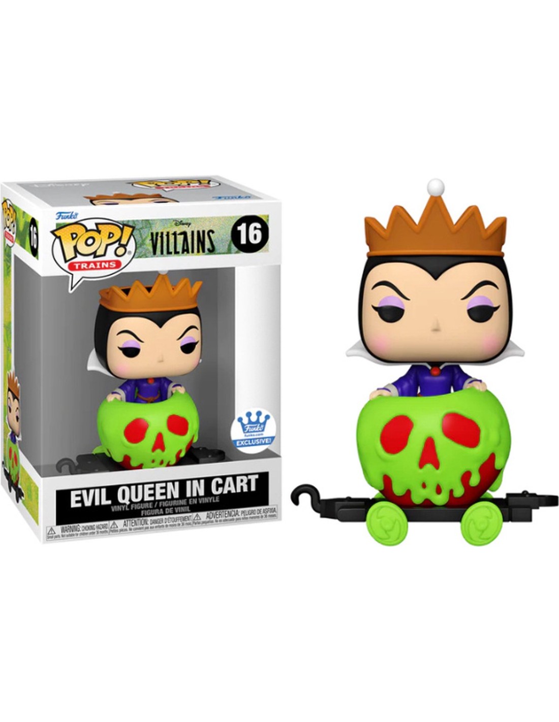 Funko Pop! Tren Disney Villanos: Reina Malvada en Carro - ¡La villana más icónica de Disney llega en un formato único! Esta figura Funko Pop! exclusiva captura a la Reina Malvada en su icónico carrito con la manzana envenenada. Perfecta para coleccionistas de Disney y fans de los villanos, esta figura es una adición imprescindible para cualquier vitrina.