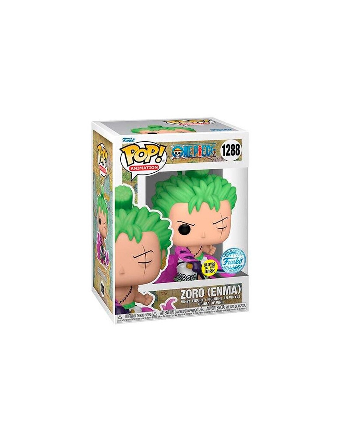 La Figura Funko Pop! Zoro (Enma) de One Piece (Modelo 1288 | 65028) es una pieza especial y espectacular que representa a uno de los personajes más queridos y poderosos de la serie. Roronoa Zoro, el espadachín de los Sombrero de Paja, aparece en esta edición con su espada legendaria Enma, una de las espadas más fuertes que ha empuñado en su viaje. Esta figura no solo es detallada, sino que además cuenta con un atractivo adicional: brilla en la oscuridad, lo que la convierte en una pieza única dentro de cualquier colección.