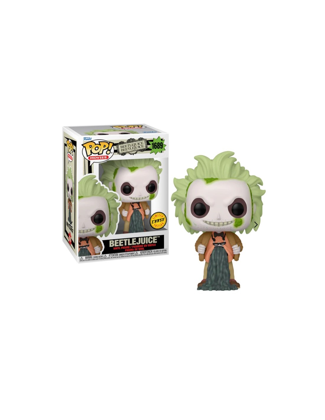 La Figura Funko Pop! Películas Beetlejuice Beetlejuice Edición Chase Modelo 1689 | 82653 es una versión exclusiva y limitada del legendario personaje de la película Beetlejuice (1988), dirigida por el aclamado Tim Burton. Este modelo Chase añade un toque especial a la clásica figura, siendo una variación exclusiva para los coleccionistas más exigentes.