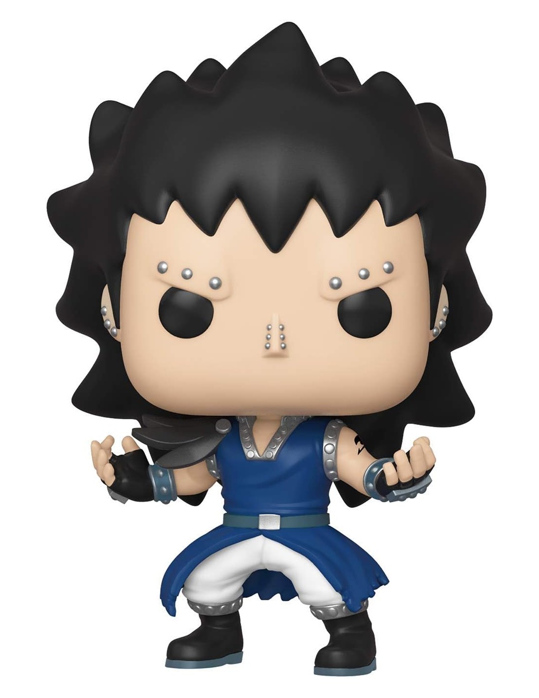 La figura Funko Pop! Animación Fairy Tail Gajeel Modelo 481 | 30604 captura a uno de los personajes más imponentes del anime Fairy Tail. Gajeel Redfox, el feroz Dragon Slayer de hierro, está recreado con gran detalle, desde su imponente postura hasta sus característicos piercings y el cabello oscuro y puntiagudo.