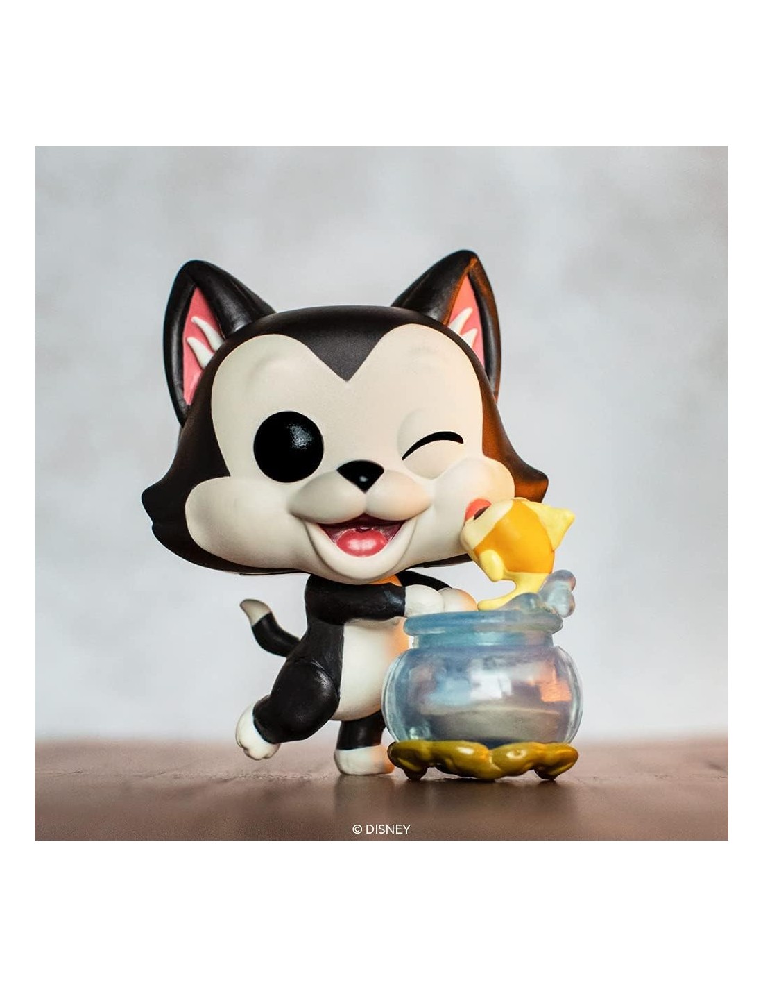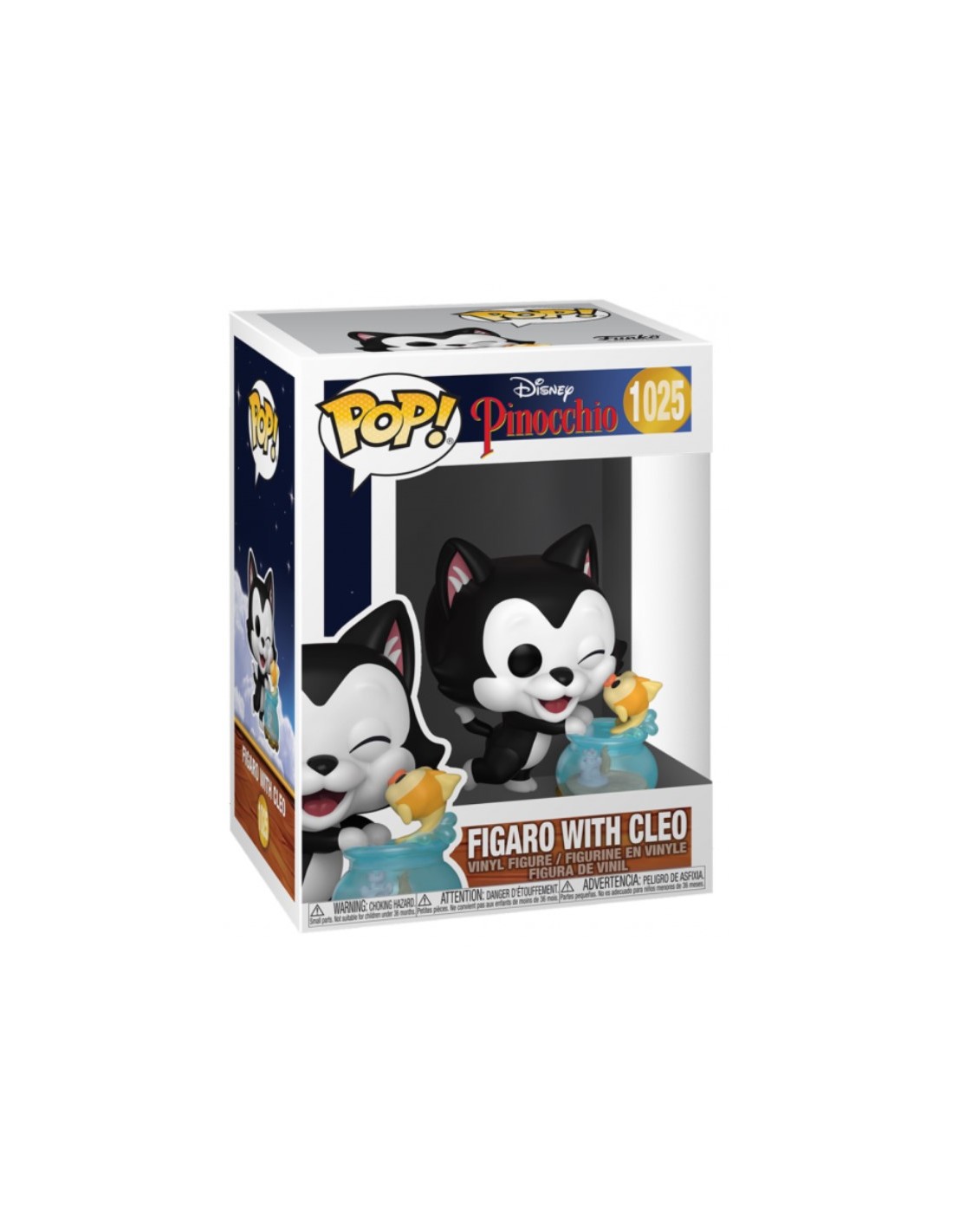Este Funko Pop! muestra a Fígaro sentado con su expresión curiosa y juguetona, acompañado de Cleo en su pecera, reflejando la dulzura y complicidad de estos personajes. Con el número 1025 en la colección Funko Pop! de Disney, esta figura es perfecta para quienes aprecian los detalles y buscan un toque nostálgico en su colección de personajes Disney.