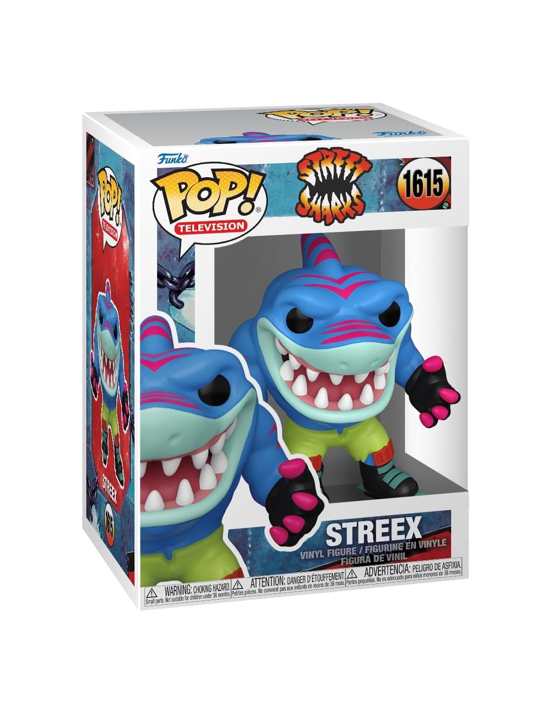 La Figura Funko Pop! Televisión Street Sharks Streex Modelo 1615 | 82660 representa al legendario Streex, el líder de los Street Sharks, la serie animada de los años 90 que se hizo famosa por su combinación de acción, aventura y criaturas mutantes. Streex, un tiburón mutante convertido en héroe, lidera a su equipo para enfrentar a villanos y proteger la ciudad. Con su cuerpo musculoso y su actitud audaz, es el personaje más destacado de la serie y un ícono de la cultura pop de los 90.