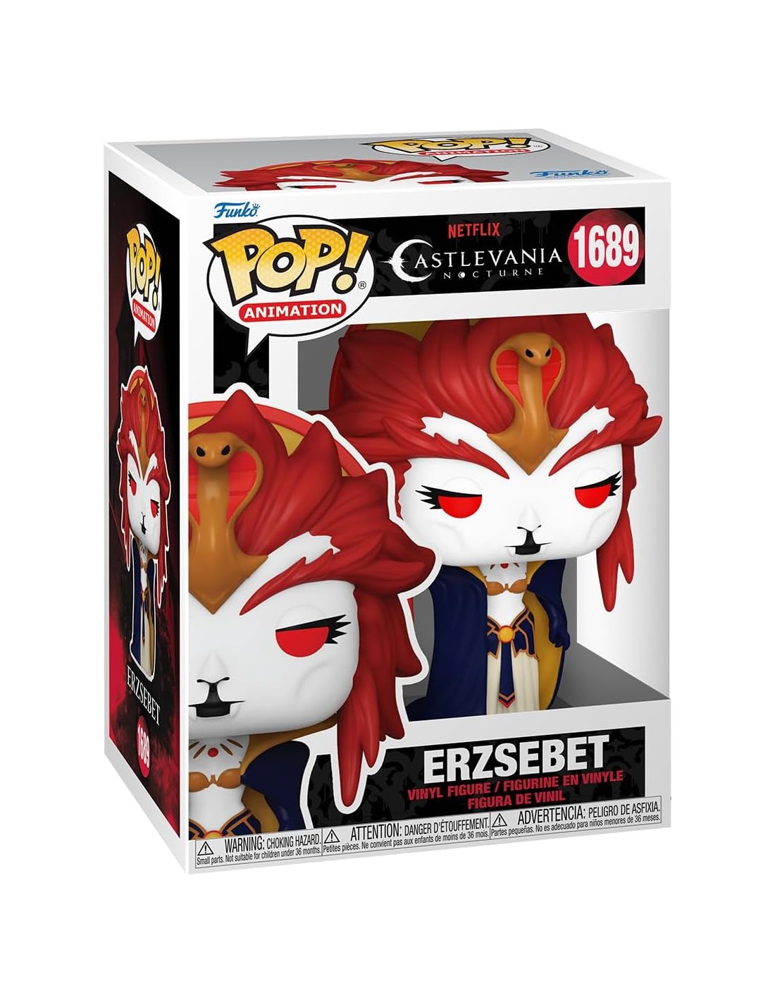 El diseño de esta figura incluye detalles precisos en el vestuario de Erzsebet, destacando su imponente figura, su vestido de época y su actitud desafiante, lo que refleja perfectamente la naturaleza de la poderosa vampira. Con el número 1689 en la colección Funko Pop! de animación, esta figura es un must-have para los seguidores de Castlevania: Nocturne y los coleccionistas de figuras Funko Pop!