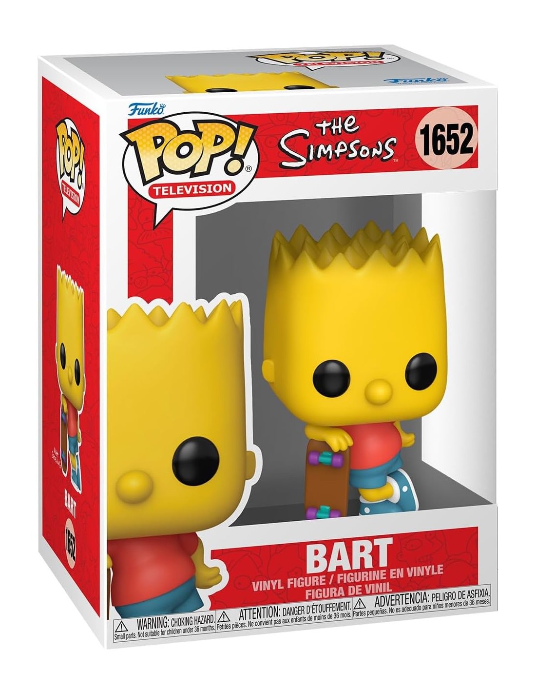 La Figura Funko Pop! Televisión Los Simpsons Bart con Monopatín Modelo 1652 | 80071 captura a Bart Simpson, el niño travieso más famoso de Springfield, en una pose que refleja su espíritu rebelde y despreocupado. Apoyado en su inseparable monopatín, Bart está listo para causar travesuras y desatar risas, como lo ha hecho a lo largo de las temporadas de Los Simpsons.